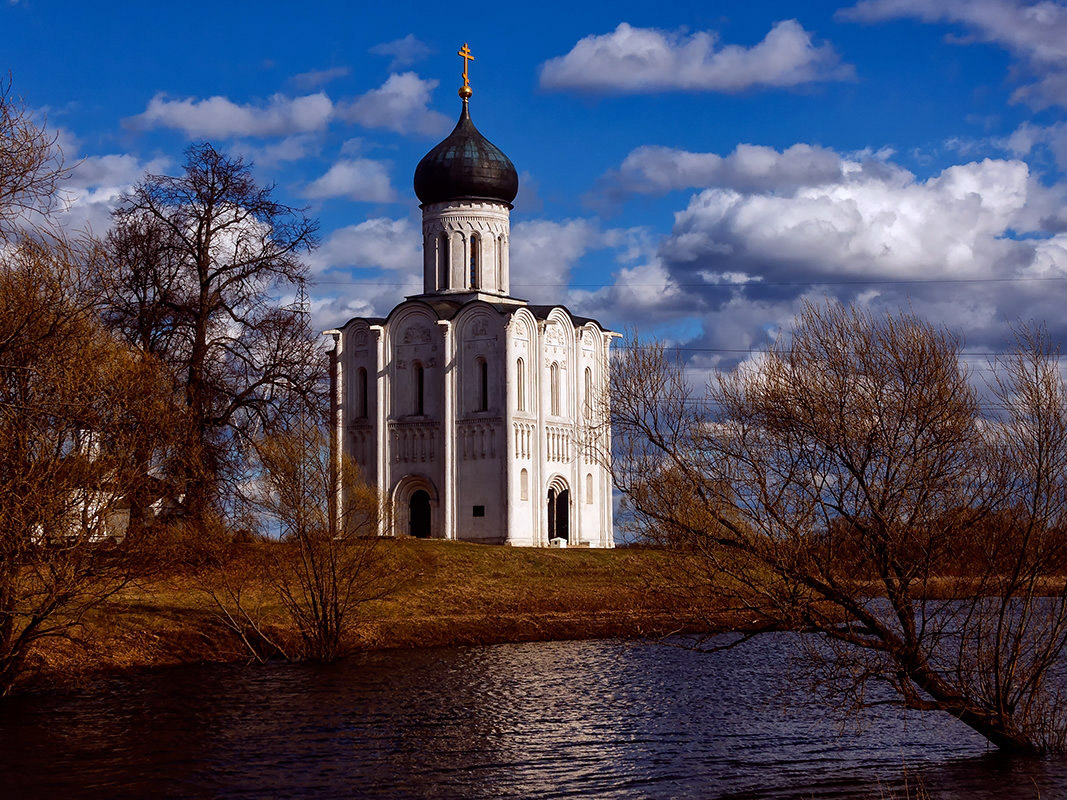 Во всей русской поэзии, давшей миру столько непревзойденных шедевров, нет, быть может, памятника более лирического, чем церковь Покрова на Нерли, ибо этот архитектурный памятник воспринимается как поэма, запечатленная в камне. И кажется нам правдивым предание, что князь Андрей построил этот храм «на лугу», недалеко от своих боголюбовских палат после кончины любимого сына Изяслава — в память о нем и в умиротворение своей печали...Водная гладь, заливные луга и, словно башня, словно свеча, сверкающий ослепительной белизной этот легкий одноглавый храм, так чудесно вырастающий над их простором во всем своем бесконечном изяществе, во всей своей чарующей ясности, лаконической красоте.