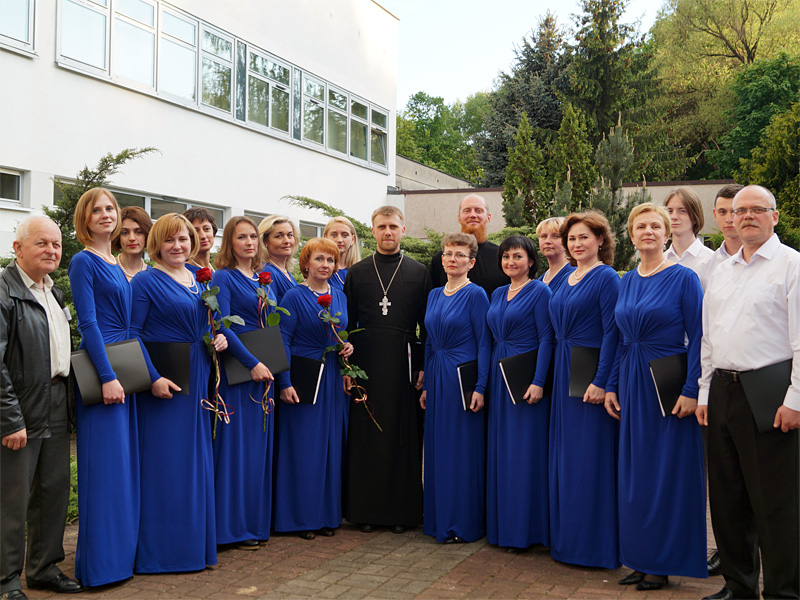 Много добрых слов хочется сказать о руководителе коллектива — иерее Сергии Прокопчике. Священник, яркий грамотный музыкант, удивительно трудолюбивый и увлеченный человек, он всю свою энергию отдает работе с хором. О. Сергий стал духовным наставником для всех его участников, помогая через пение молитв приобщаться к чистому роднику нашей веры.