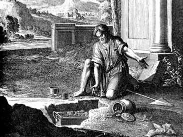 Оправдали ожидания господина только два раба. Третий закопал талант в землю и скрыл серебро господина своего (Мф.25:18). Под землею надо понимать самого обладателя таланта: он либо погубил данные ему дарования, либо обратил их для себя: для удовлетворения гордыни и честолюбия, корыстолюбиво использовал только ради своего обогащения. Он ничего не принес господину.