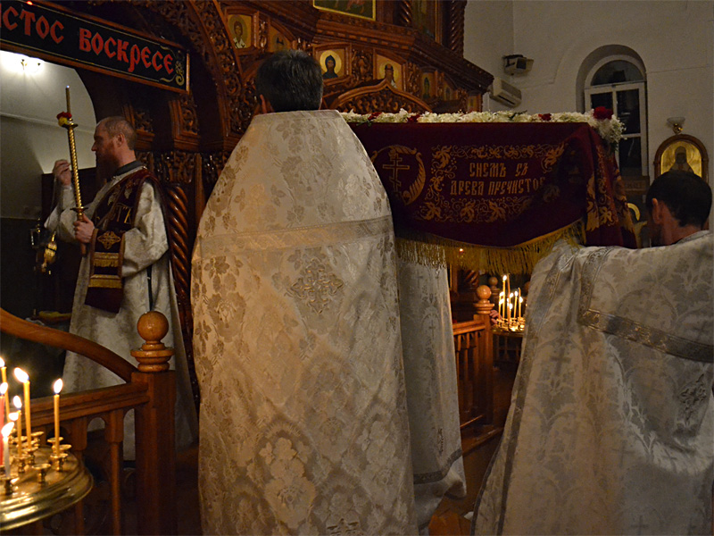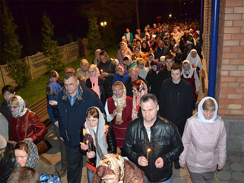 Огромное множество православных верующих посетило в ту ночь храм. Его помещение не могло вместить всех желающих. Многие молились во дворе храма. Во время перерыва и по окончании богослужений священники до самого утра, а затем днем освящали принесенные людьми пасхальные куличи и яйца. А до этого освящение проходили в Великую субботу.