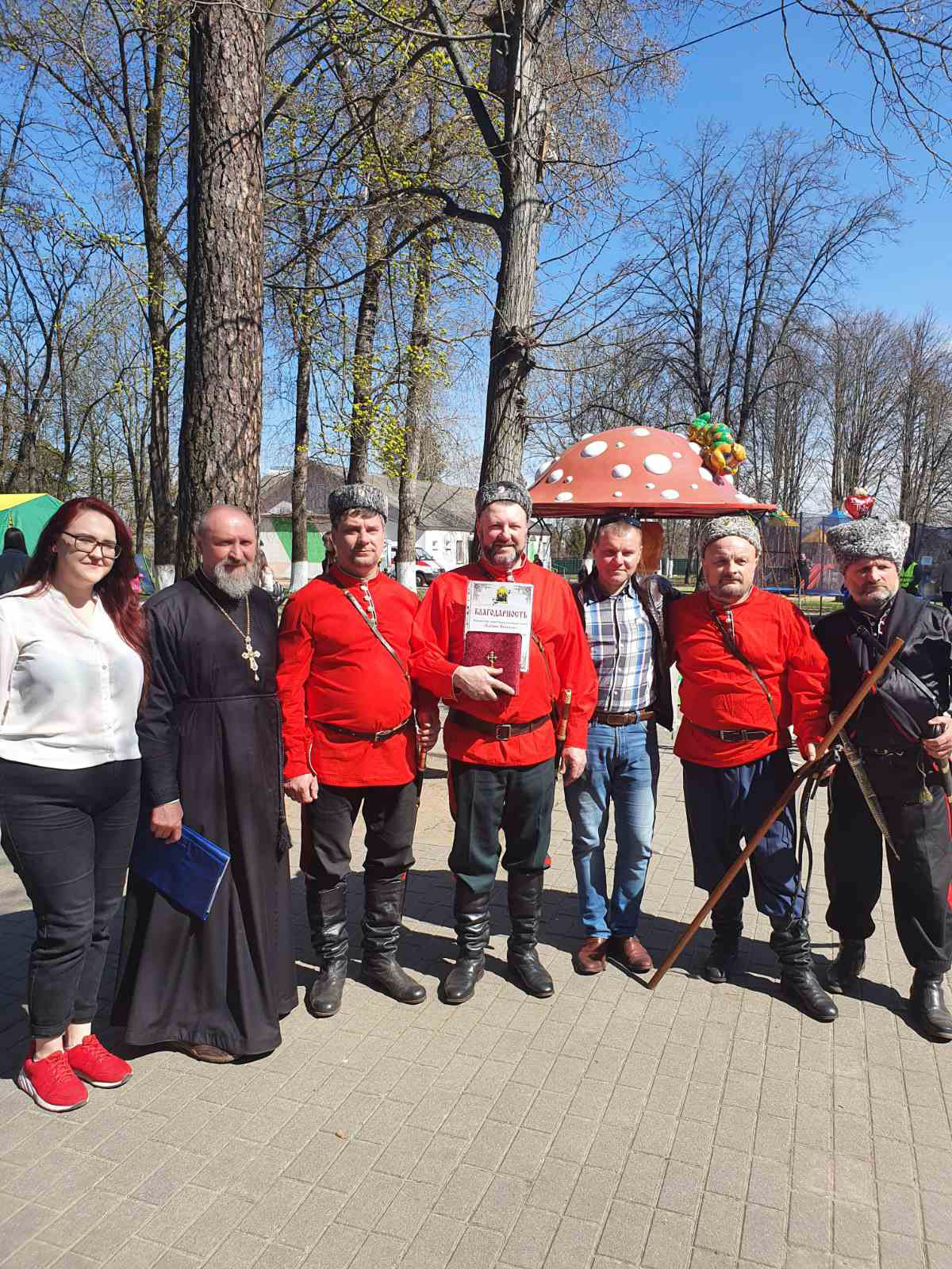 Рядом была организована импровизированная фотозона, где желающие могли сфотографироваться в традиционной казачьей форме.