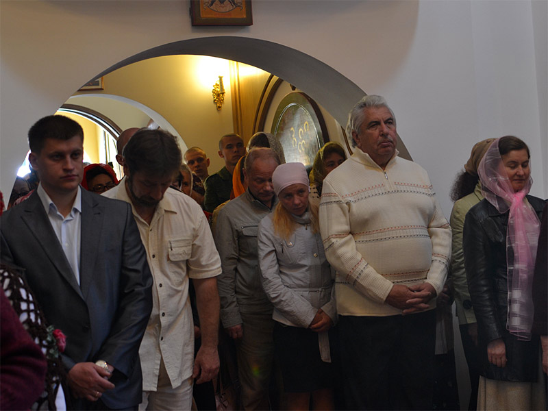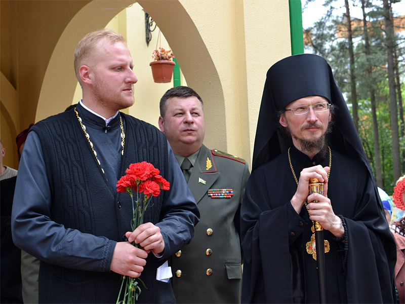 Перед храмом был выстроен почетный воинский караул. Владыку Вениамина встречали начальник 72 ОУЦ генерал — майор В.В. Гнилозуб, заместитель председателя Борисовского райисполкома В.Н. Шутко, настоятель прихода иерей Сергий Башкиров.