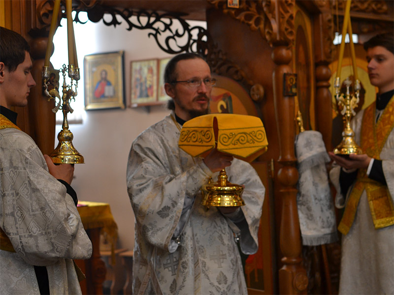 Во время Богослужения Владыка Вениамин по благословению Митрополита Минского и Слуцкого Филарета Патриаршего Экзарха всея Беларуси в благодарение за службу во славу Церкви наградил настоятеля храма святого благоверного князя Дмитрия Донского иерея Сергия Башкирова правом ношения наперстного креста.