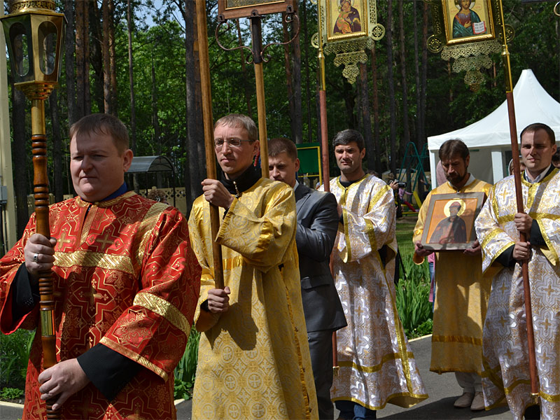 После совершения крестного хода Владыка выступил с речью, в которой поздравил прихожан и всех присутствующих с православным праздником прославления благоверного великого князя Димитрия Донского и одновременно с гражданским праздником Днем защиты детей.