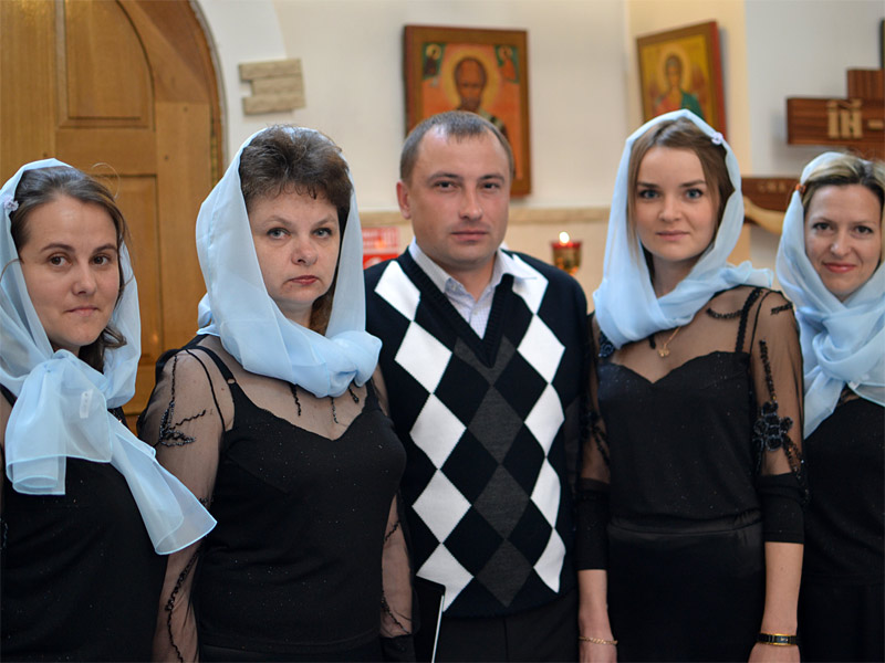 Епископа Борисовского Вениамина и всех молящихся по окончании Литургии духовным песнопением приветствовала народная хоровая капелла Староборисовского Дома культуры «Светоч» под управлением Оксаны Задорожной.