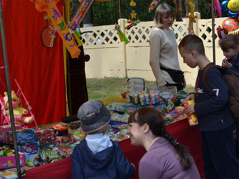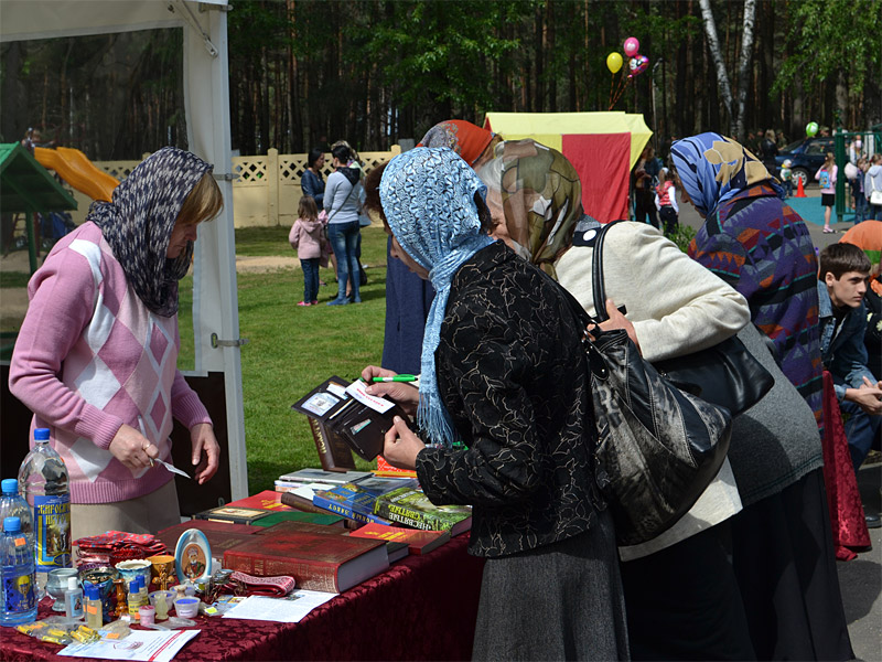 На специальных стендах были представлены работы художественной выставки «Божий мир глазами детей», золотошвейной мастерской и иконописной студии храма. Работали киоски и лавки по продаже книг, предметов религиозного назначения, детских игрушек и сладостей.