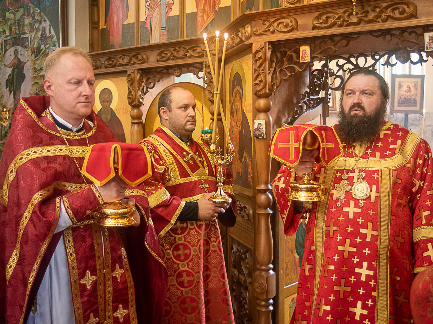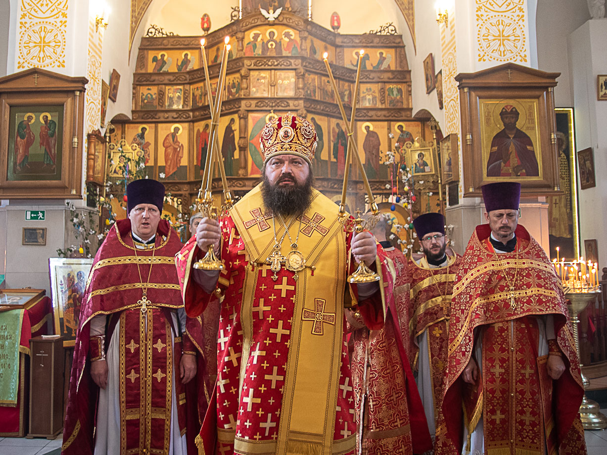 За богослужением Преосвященнейшему Амвросию сослужили: секретарь Борисовской епархии, благочинный Борисовского городского церковного округа, настоятель прихода храма Рождества Христова г. Борисова протоиерей Александр Вербило; секретарь Борисовской епархии, настоятель храма святого благоверного князя Димитрия Донского в г. Борисове протоиерей Сергий Башкиров; председатель Синодального информационного отдела БПЦ, настоятель храма иконы Божией Матери «Всех скорбящих Радость» д. Гора протоиерей Игорь Васько; священнослужители Борисовской епархии.