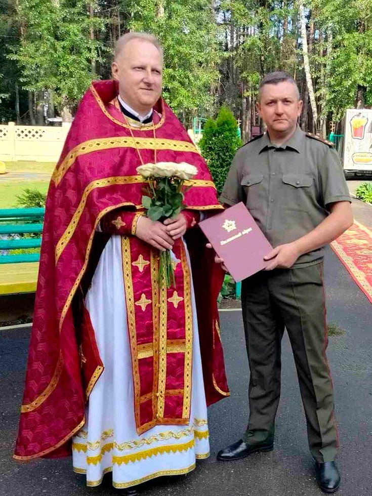 В начале богослужения настоятелю прихода протоиерею Сергию Башкирову был передан поздравительный адрес с престольным праздником от начальника 72-го гвардейского объединенного учебного центра подготовки прапорщиков и младших специалистов Вооруженных Сил гвардии полковника Вадима Сурова.
