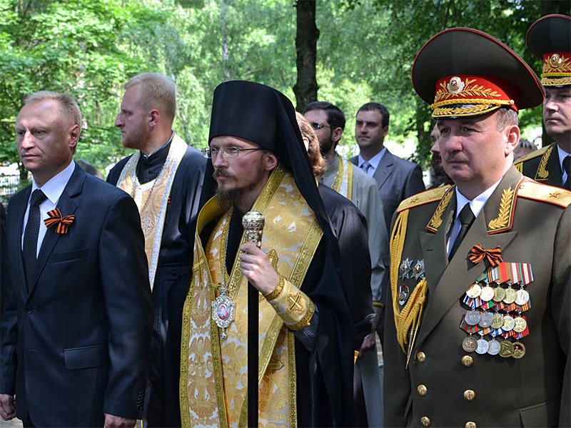 В митинге приняли участие епископ Борисовский Вениамин, викарий Минской епархии, духовенство Борисовского благочиния, председатель Борисовского райисполкома В.В. Миранович, представители командования войсками Северо-Западного оперативного командования