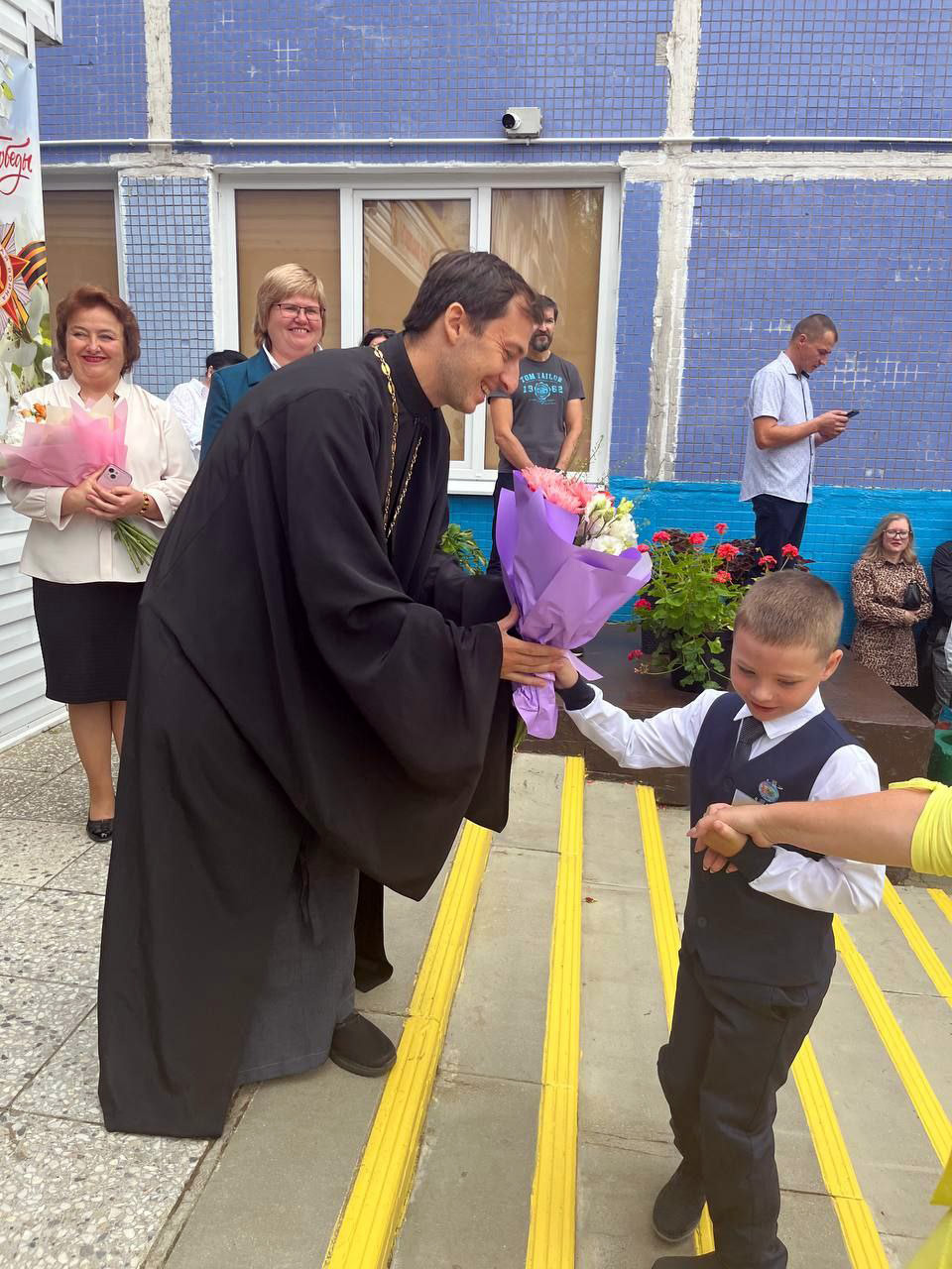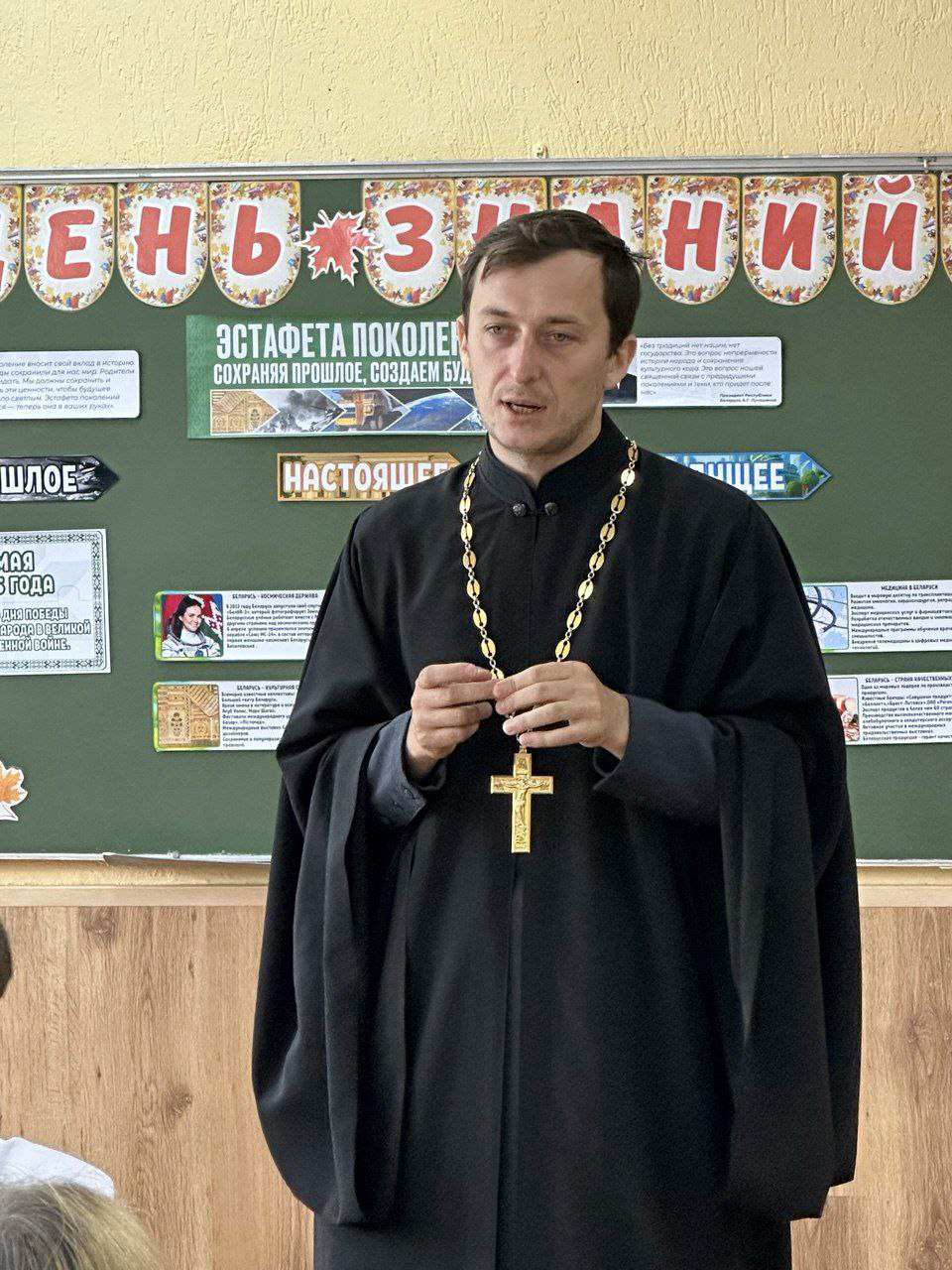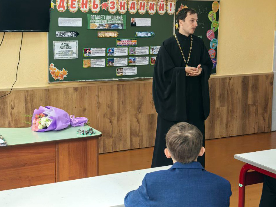 Иерей Артемий поздравил педагогов, учащихся и их родителей с началом учебного года. Также иерей Артемий был приглашен на первый урок «Эстафета поколений: сохраняя прошлое, создаем будущее». Процесс формирования традиций, важность их сохранения и приумножения - главные темы беседы с ребятами. Кроме того, были рассмотрены духовно-нравственные аспекты, влияющие на формирование добрых и полезных правил жизни. Ребята охотно задавали вопросы и получали развернутые ответы. Встреча прошла живо, непринужденно, интересно.