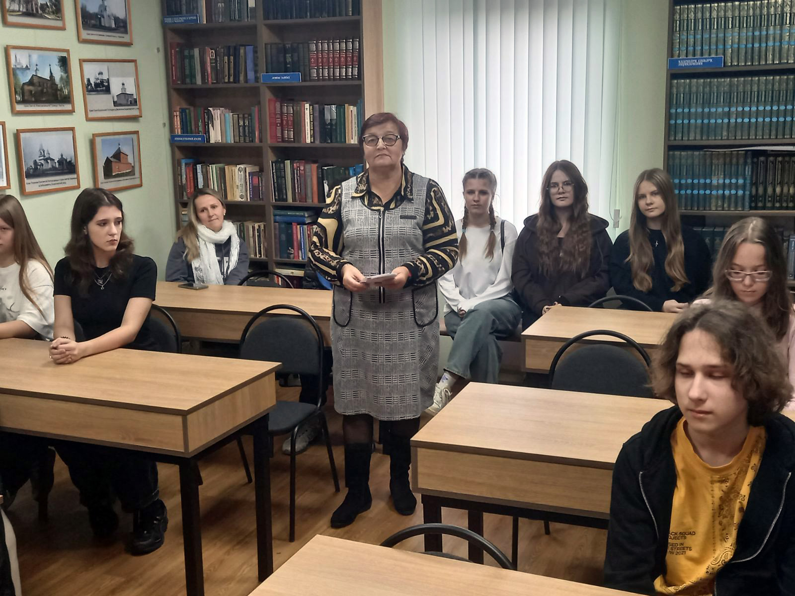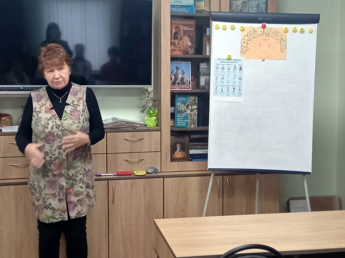 В приходской библиотеке, разговор с ребятами шел о понимании смысла жизни, возможности реализации своих целей жизни, поиск важных ориентаций для будущего. Далее с учащимися был проведен психологический тест понятия "человечность". Ребята подбирали к данному понятию соответствующие по смыслу слова и выражения. Провела этот тест с ребятами психолог Ирина Перова.
