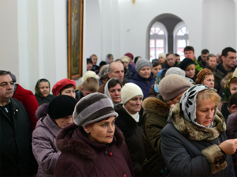 Преосвященнейшему Владыке сослужили благочинный Борисовского церковного округа, настоятель прихода храма Рождества Христова протоиерей Александр Вербило, митрофорный протоиерей, почетный настоятель Свято-Воскресенского кафедрального собора Иоанн Мисеюк, духовенство собора.