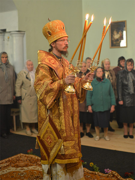 Епископ Борисовский Вениамин вместе с духовенством Борисовского церковного округа - благочинным, настоятелем храма Рождества Христова протоиереем Александром Вербило, настоятелем храма иереем Михаилом Давыдовым, а также дьяконом Свято-Воскресенского собора Георгием Росляковым совершили Божественную литургию в храме Святой Троицы в д.Бытча Борисовского района.