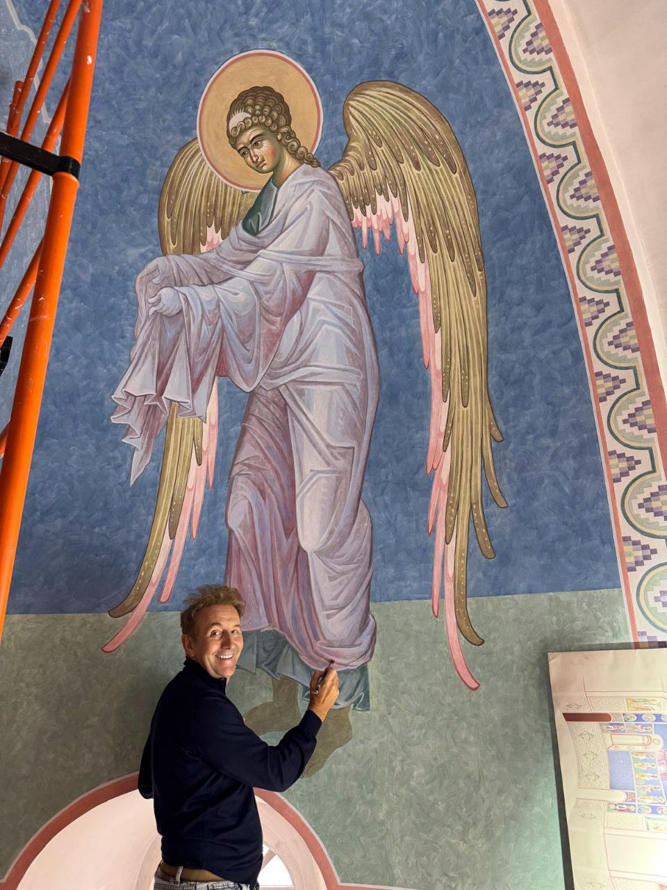 2 октября куратор росписи кафедрального собора Воскресения Христова г. Борисова, руководитель отдела по церковному строительству и архитектуре Борисовской епархии, настоятель прихода храма святого Архангела Михаила аг. Зембин протоиерей Андрей Капульцевич совместно с меценатом проекта, руководителем ООО «Пожснаб» Дерябиным Олегом Александровичем поднялись на леса и проинспектировали ведущиеся работы иконописцев.
