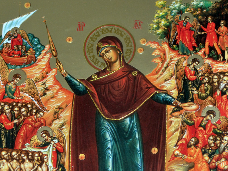 «Всех скорбящих Радосте, и обидимых Заступнице, алчущих Питательнице, страстных Утешение, обуреваемых Пристанище, больных Посещение...» — поется в стихире Пресвятой Богородице. Эти слова помещаются на иконе над группой людей, страждущих от болезней или житейских скорбей, которые молитвенно припадают к Божией Матери, стоящей во весь рост, иногда с Божественным младенцем на руках.