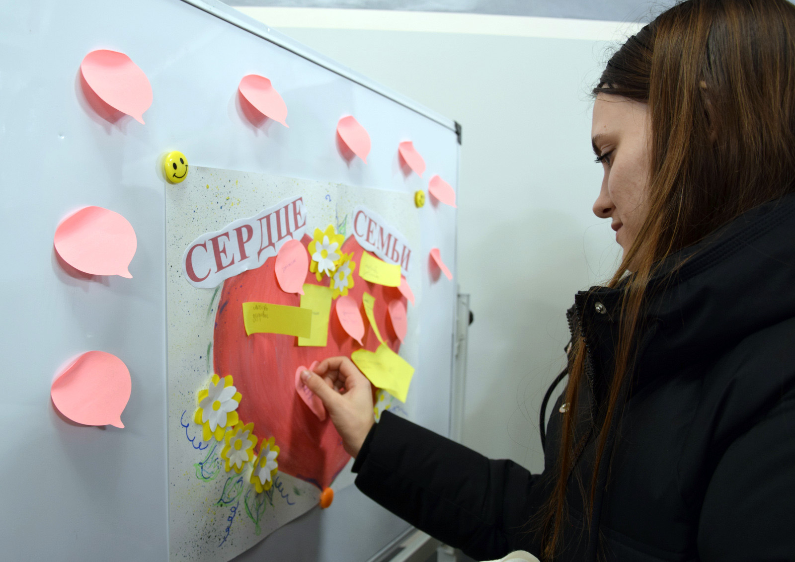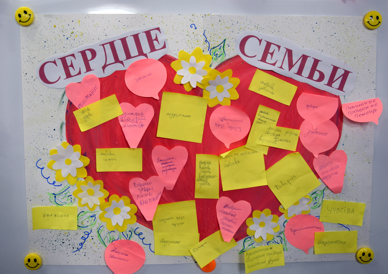 В завершение встречи молодые люди «создали» интерактивный плакат «Сердце семьи», где каждый мог высказаться о составляющих крепкой семьи.
