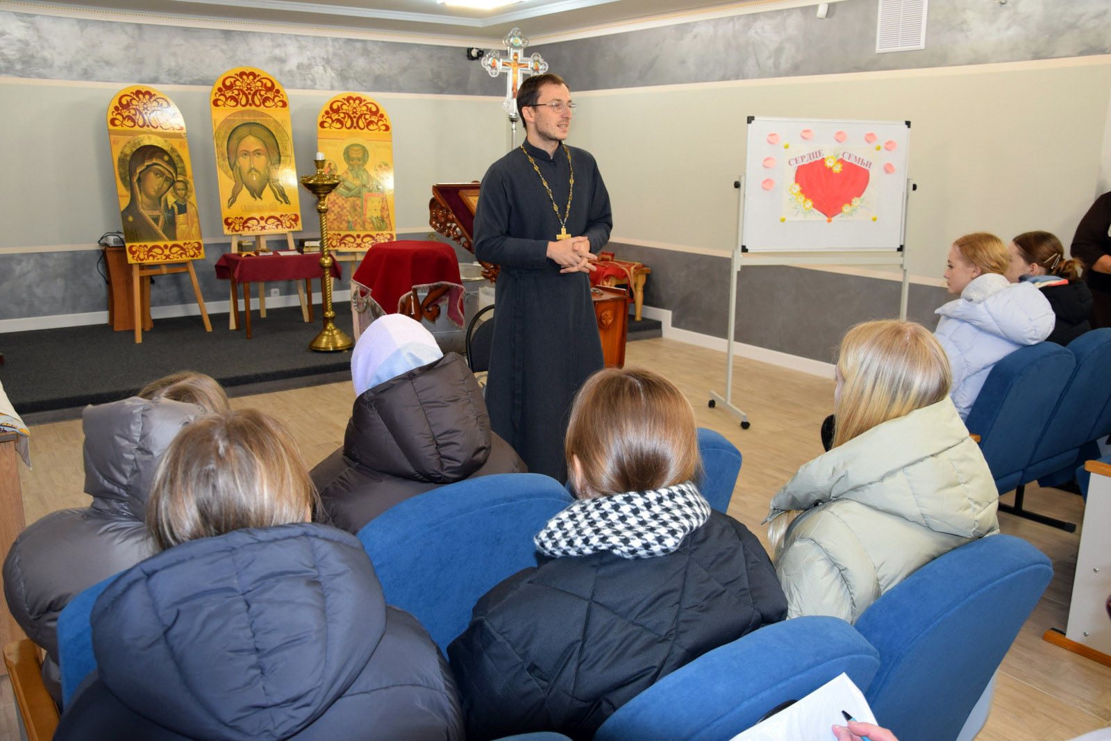 В духовно-просветительском центре храма отец Артемий, администратор центра Валентина Шутко, психолог центра Ирина Перова вели разговор с молодежью о традиционных духовных семейных ценностях, таких как любовь, доверие, уважение, верность, забота, поддержка, взаимопонимание и взаимопомощь, а также о роли семьи как фундамента для воспитания детей и формирования их личности. Также обсуждались важность уважения старших и привития таких качеств, как честность и трудолюбие, что соответствует православному пониманию семьи как хранительницы духовных ценностей.