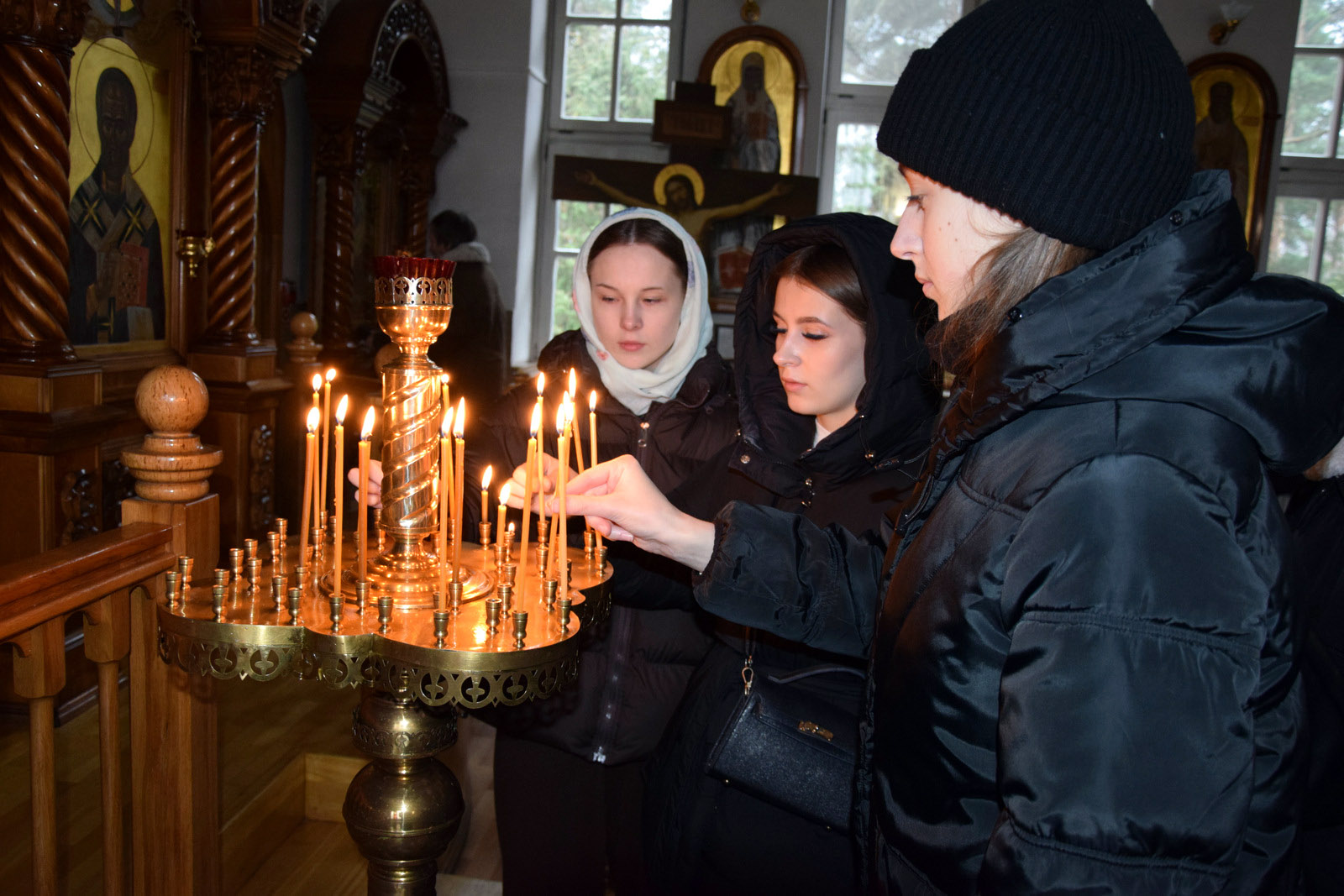 В храме молодые люди смогли поставить свечи с молитвой о здравии родных и близких.