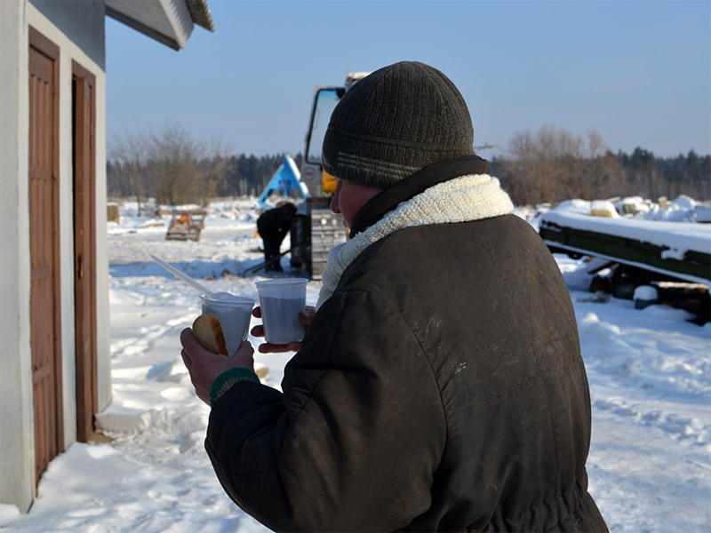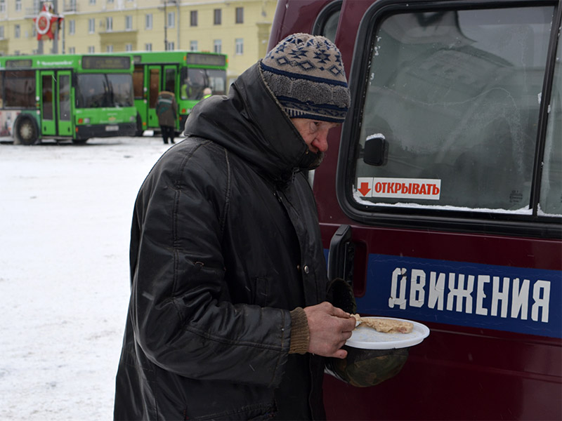 Социальная служба Борисовского благочиния в эти дни, в период сильных морозов, передает горячую пищу людям, которые по разным причинам оказались на улице, так называемым «лицам без определенного места жительства».