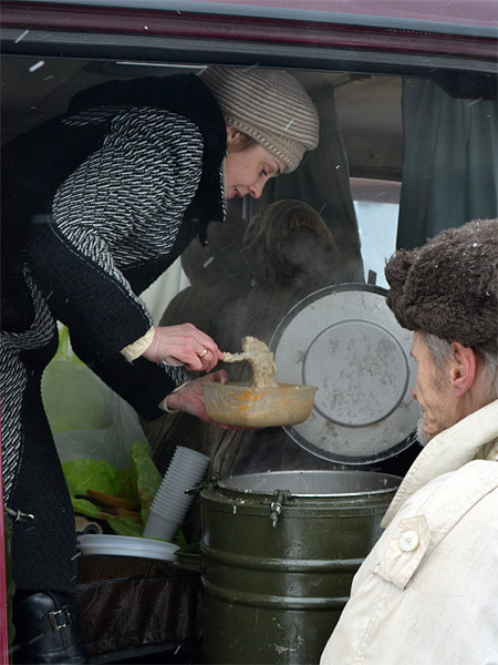 Ежедневно, с 2-ого февраля, более 40 человек накормлены и согреты горячим чаем. Акция продлится до 9 февраля.