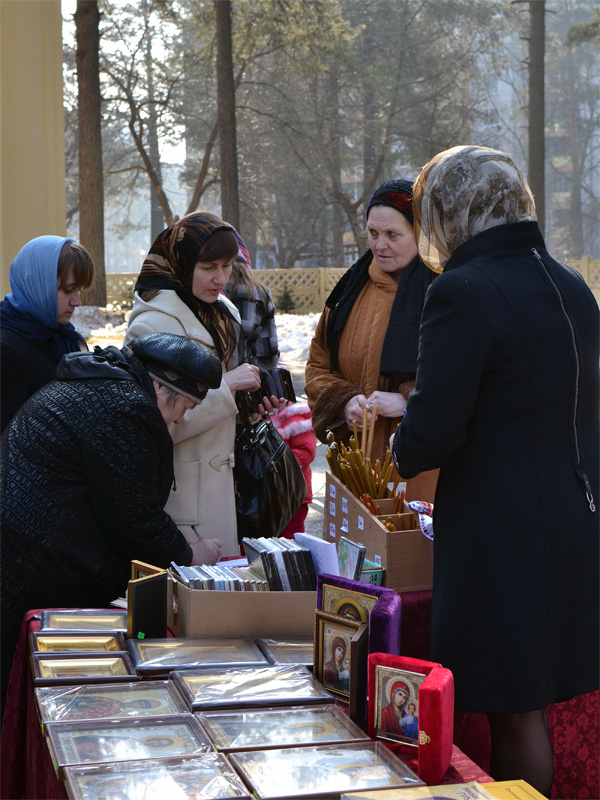 Здесь же на территории храма Свято — Елисеевским Лавришевским мужским монастырем была организована православная выставка — ярмарка, где каждый желающий мог приобрести христианскую литературу, иконки, аудиозаписи с проповедями священников, видеофильмы на различные христианские темы.