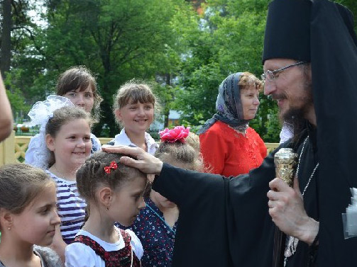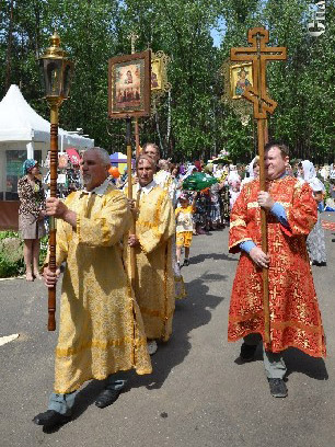 По окончании Божественной литургии был совершён крестный ход вокруг храма.