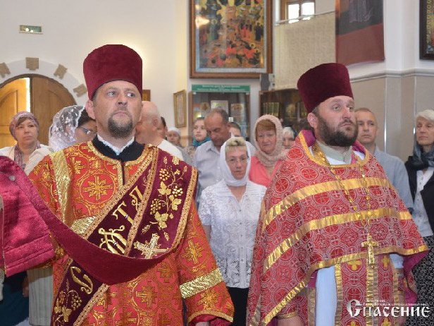 Его Преосвященству сослужили: почётный настоятель Свято-Воскресенского кафедрального собора в г. Борисове митрофорный протоиерей Иоанн Мисеюк, митрофорный протоиерей Владимир Башкиров, настоятель храма в честь святого благоверного князя Димитрия Донского иерей Сергий Башкиров, настоятель храма Воздвижения Креста Господня в д. Загорье Борисовского района иерей Иоанн Миронович, протодиакон Свято-Воскресенского кафедрального собора Георгий Росляков.
