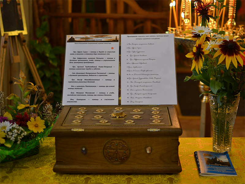 Святыни будут находиться в храме с 3 по 10 июля 2011 года. Молитва святым осуществляется ежедневно в 10:00. Прихожане и гости храма смогут молитвенно прикоснуться к святыням также ежедневно с 8:00 до 19:00 ежедневно