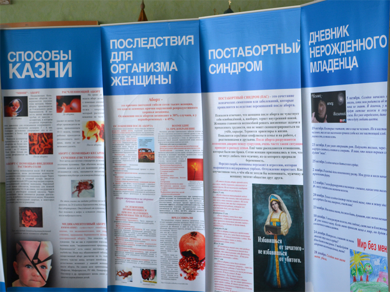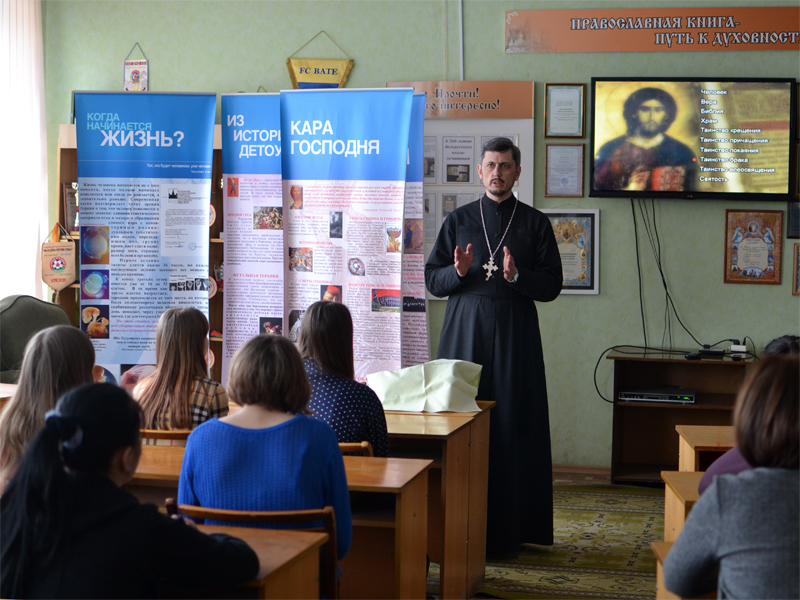 Стало доброй традицией ежегодное проведение в г. Борисове и Борисовском районе выставки в защиту жизни нерожденных детей «Выбери жизнь». Начало ее было положено еще в 2012 году. Инициаторами выставки, в сотрудничестве с Борисовским благочинием, являются Борисовский государственный медицинский колледж, родильный дом и духовно-просветительский центр Борисовской центральной районной библиотеки им. И.Х. Колодеева. На выставке представлены стенды в защиту жизни, семейных ценностей, брака и семьи, против абортов. Очередная встреча с учащимися Борисовского государственного колледжа состоялась в духовно-просветительском центре. О различных проблемах семейных отношений, их сохранения и укрепления, медицинских, нравственных и психологических последствиях абортов выступили библиотекарь центра Светлана Васильевна Ярцева, врач —гинеколог Кевлич Зинаида Александровна и благочинный 1-го Борисовского церковного округа, настоятель прихода храма Рождества Христова протоиерей Александр Вербило. Быть нравственно и духовно чистыми, знать, всегда помнить и соблюдать заповеди Иисуса Христа в будущем браке и в семейных отношениях, любить своих детей, как этому учит Господь — таков был основной лейтмотив выступления отца Александра. В заключение мероприятия посетителям выставки был показан фильм «Таинство брака».