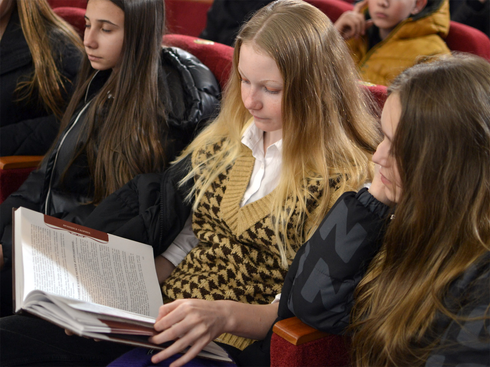 Перед учениками старших классов выступили клирик кафедрального собора иерей Дмитрий Качановский, библиотекари духовно-просветительского центра П.И. Клишина и Е.В. Тарасевич