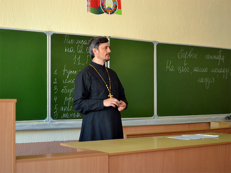 Благочинный первого Борисовского церковного округа, настоятель прихода храма Рождества Христова г. Борисова выступил перед учащимися Борисовского общеобразовательного лицея с беседой, посвященной вопросам роли духовности в жизни человека.