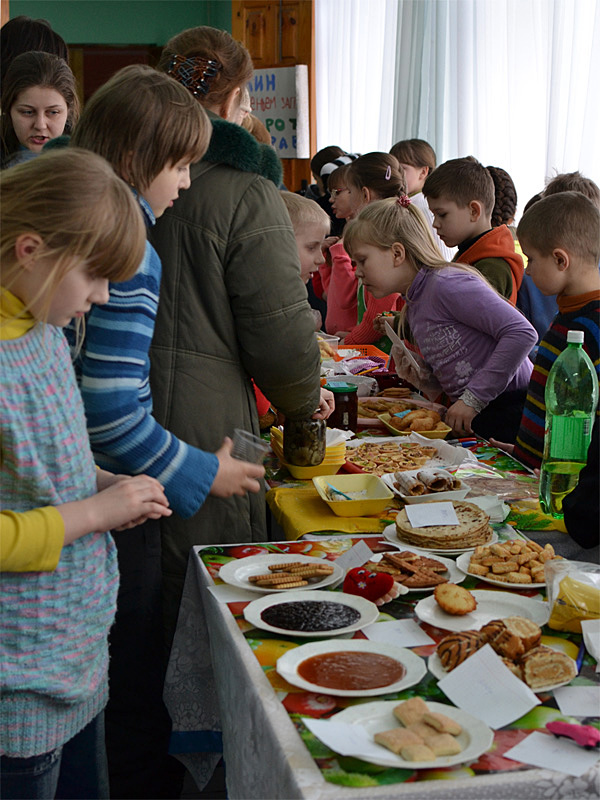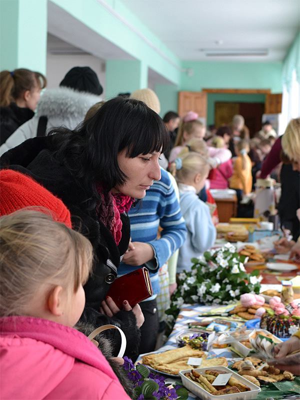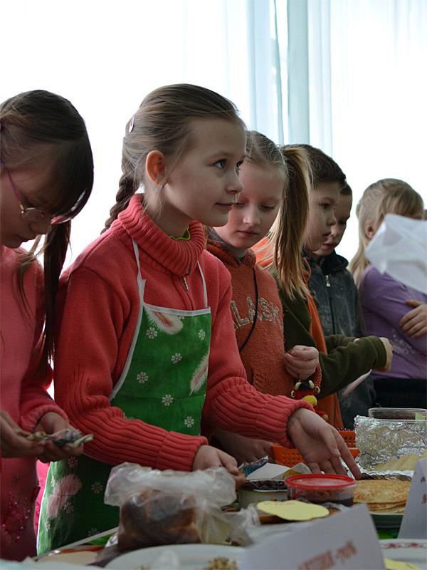 В холле школы была организована ярмарка, где дети могли купить и продать сладости и выпечку. И конечно же не обошлось без масленичных блинов со сгущенкой, вареньем и горячим чаем! Настроение создавали народные белорусские песни, смех и радость детей.
