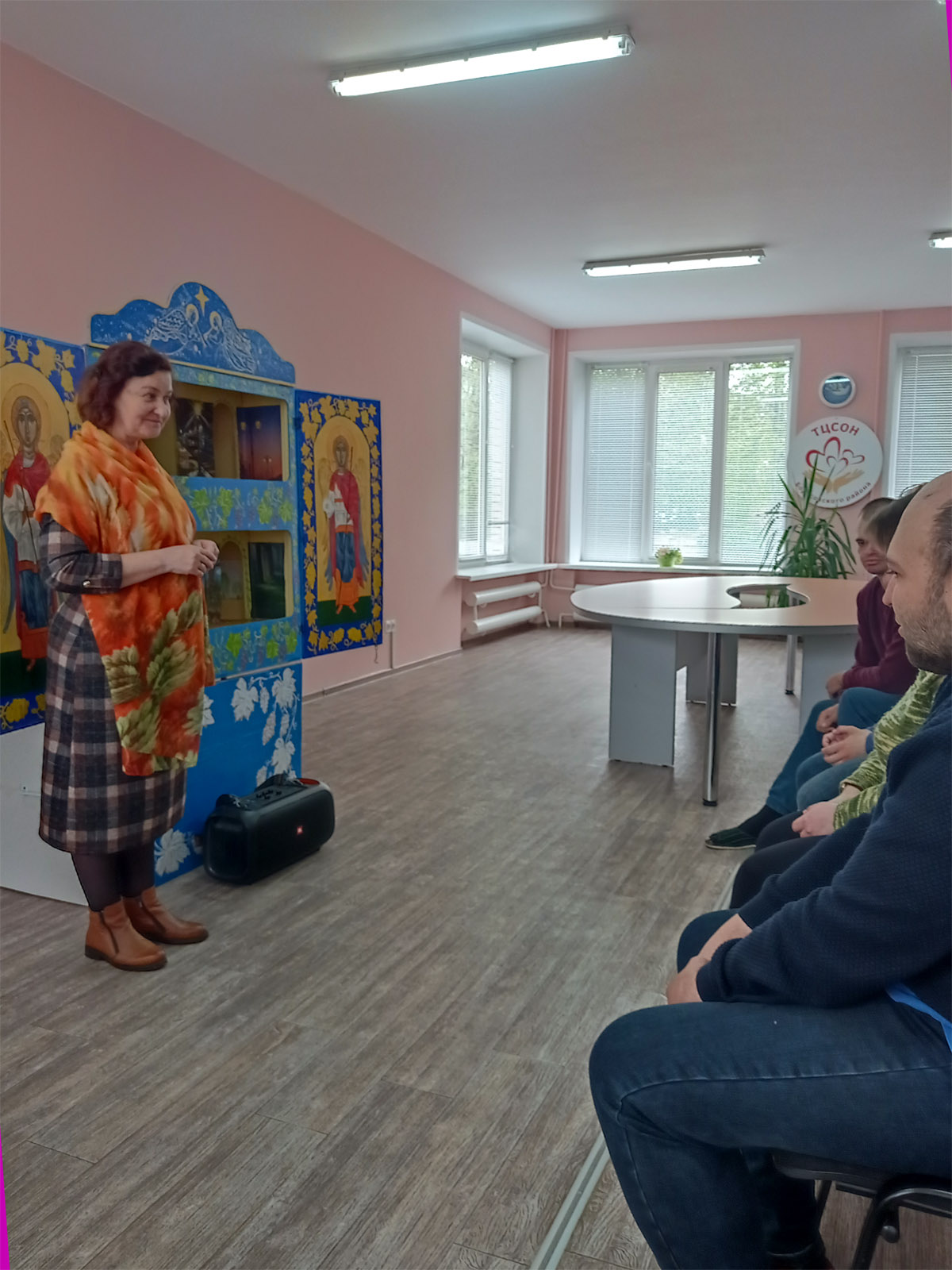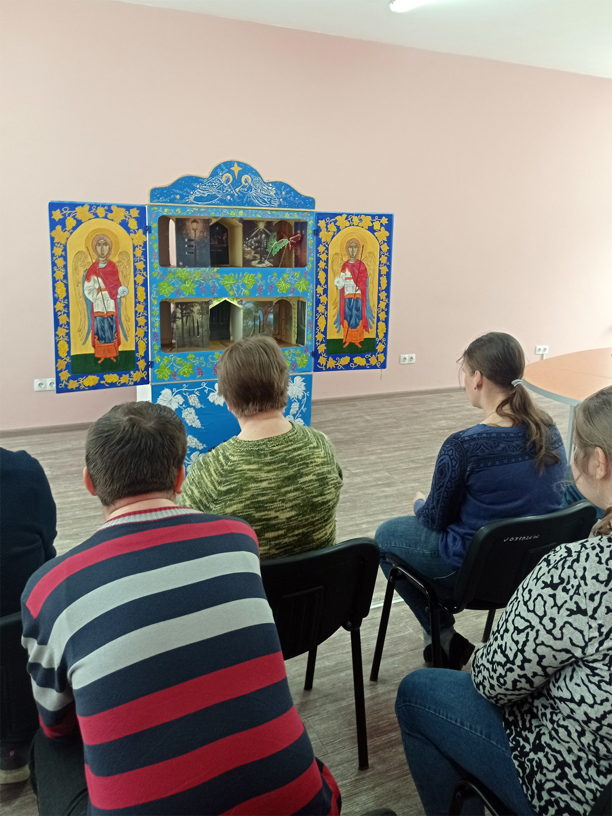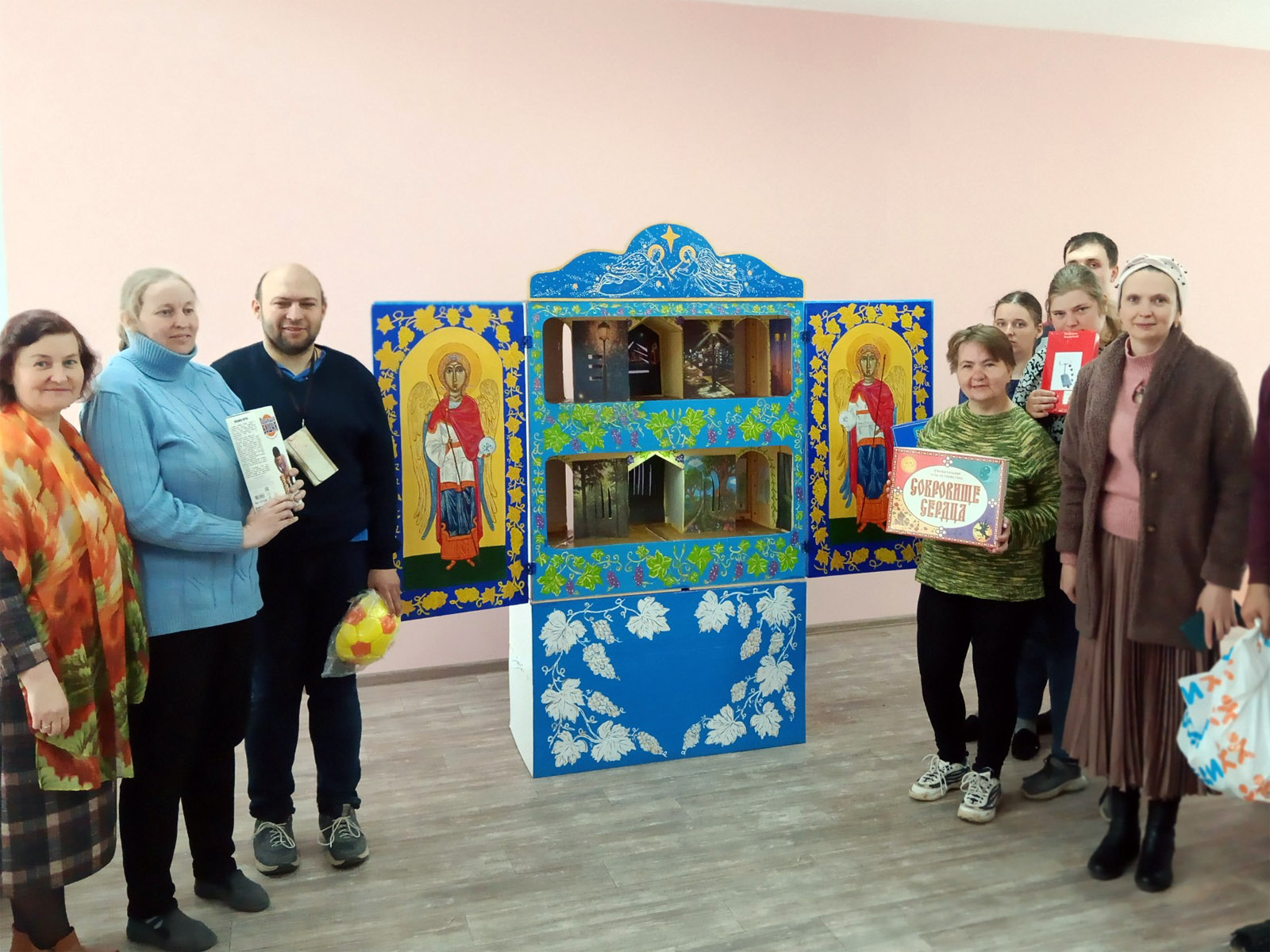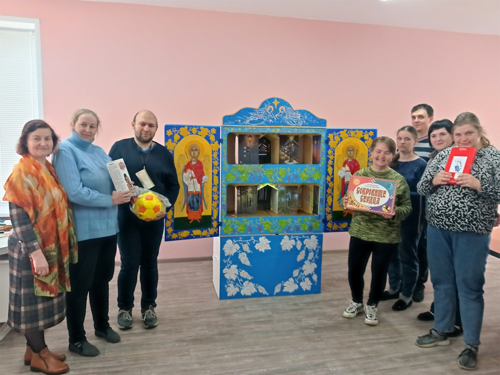 5 мая представители храма Рождества Христова и отдела по церковной благотворительности и социальному служению Борисовской епархии посетили отделение социальной реабилитации инвалидов ГУ «Территориальный центр социального обслуживания населения Борисовского района». Гости привезли кукольный театр Батлейка и показали спектакль «Приключения мотыльков». Яркие декорации спектакля и интересные куклы очень понравились ребятам. После представления гости пригласили воспитанников отделения в хлам на мастер-класс по изготовлению ангелов и пообещали подготовить новое сказочное представление. Также ребятам были вручены развивающие игры и сладости.
