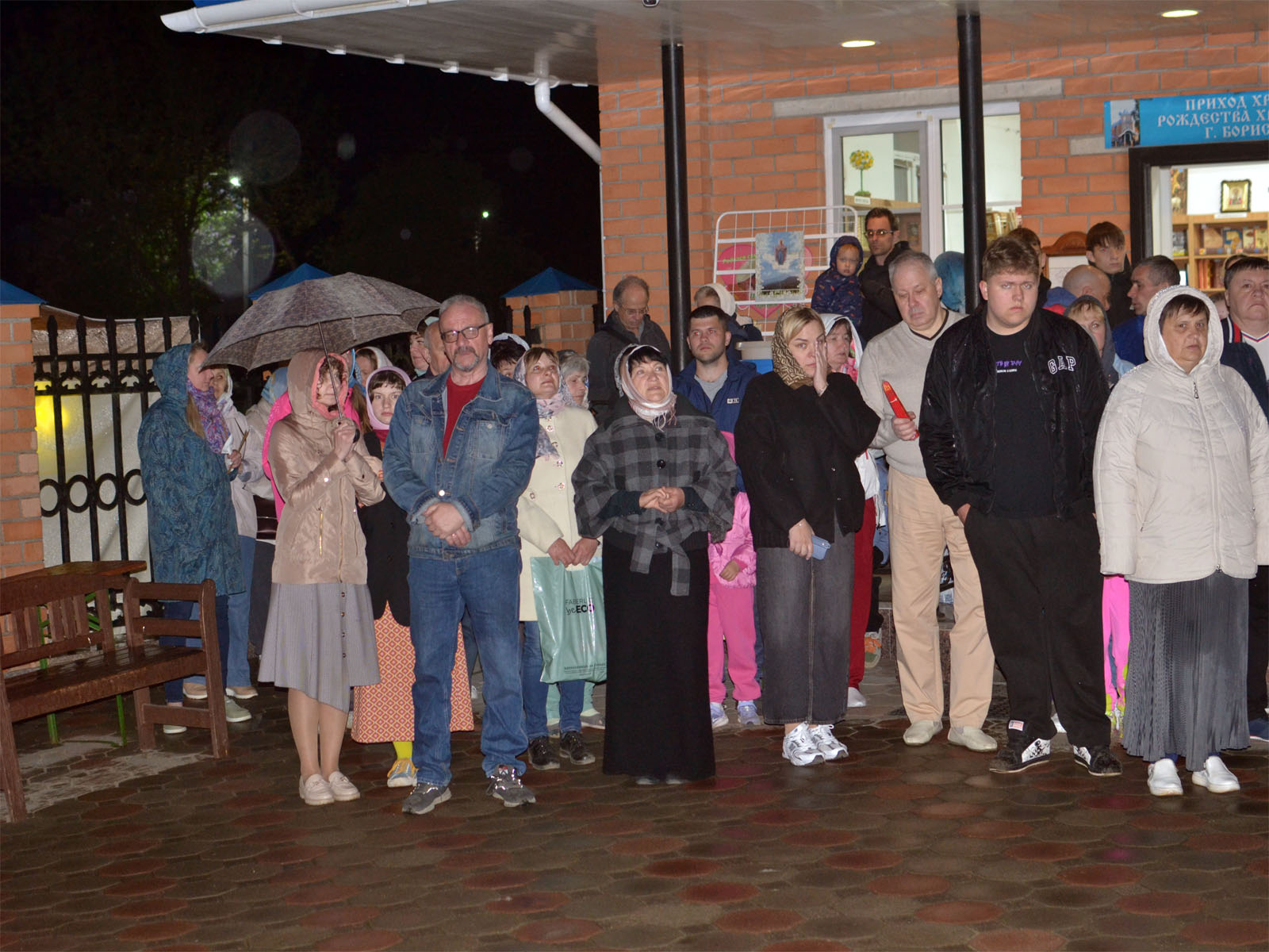 В храме Рождества Христова г. Борисова духовенство во главе с секретарем Борисовской епархии, благочинным Борисовского городского церковного округа, настоятелем прихода протоиереем Александром Вербило совершило Пасхальное богослужение — полунощницу, крестный ход и Божественную литургию. Во время богослужения были зачитаны Пасхальные Послания Святейшего Патриарха Московского и всея Руси Кирилла, митрополита Минского и Заславского, Патриаршего Экзарха всея Беларуси Вениамина. Верующие молились как в храме, так и во дворе храма.