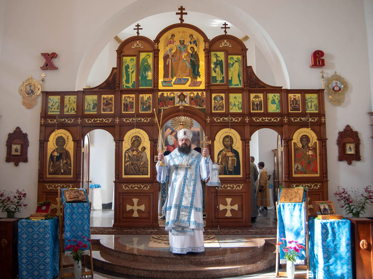 По окончании Литургии было совершено славление Почаевской иконе Пресвятой Богородицы, после чего владыка обратился к присутствующим со словом назидания.