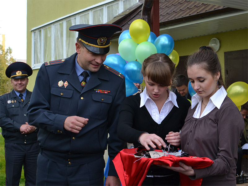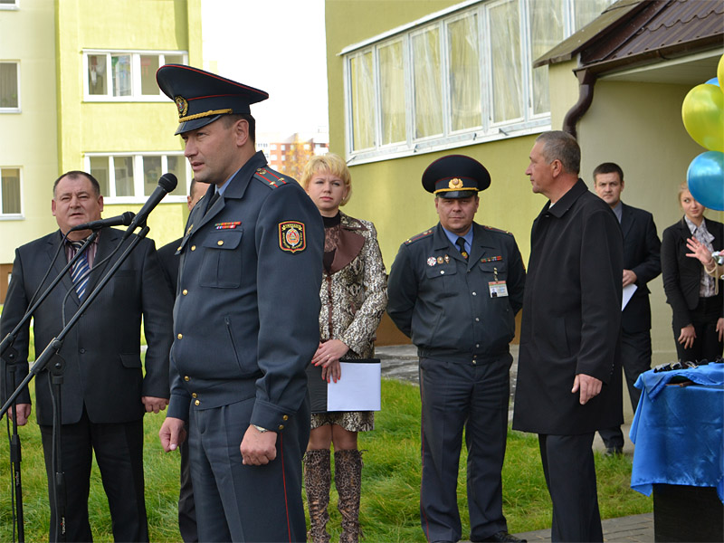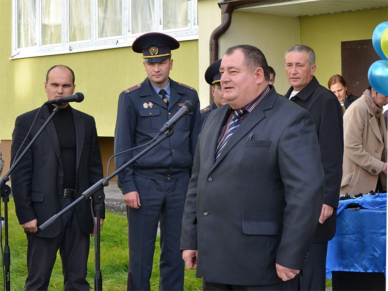 В церемонии сдачи дома приняли участие заместитель председателя Борисовского райисполкома В.Е. Позняк, заместитель начальника управления внутренних дел Минского облисполкома Э.А. Ярошук, начальник Борисовского районного управления внутренних дел С.В. Ардельянов, заместитель председателя Борисовского райисполкома В.Е. Позняк, а также благочинный церквей Борисовского округа протоиерей Александр Вербило.