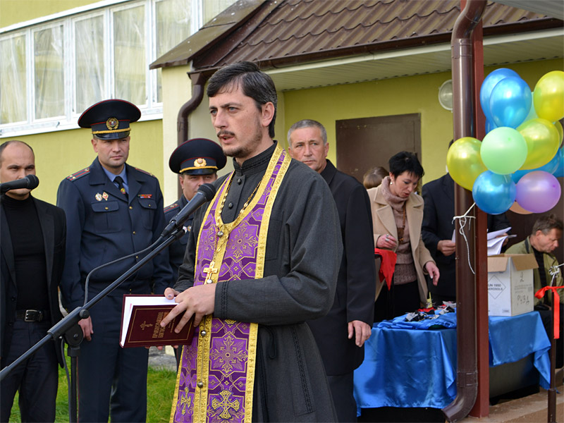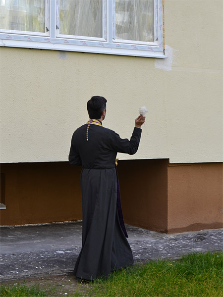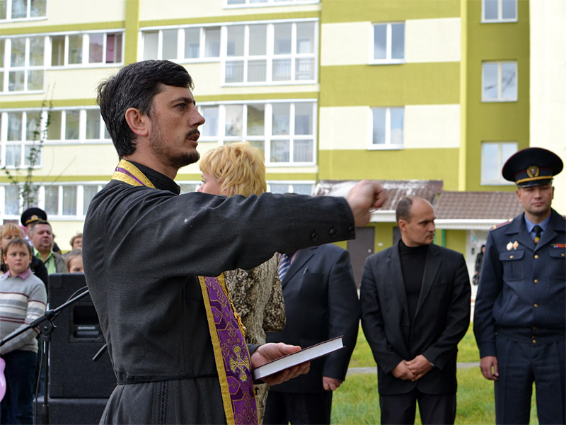Перед торжественным открытием церемонии отец Александр освятил подъезды, лестничные площадки и квартиры. Совершая благословение и освящение жилища, Церковь призывает Божию помощь и благословение Господа, необходимые нам в повседневной жизни, чтобы по слову пророка и царя Давида «ходить в непорочности сердца посреди дома своего». Обращаясь к новоселам, священник сердечно поздравил их с получением квартиры и благословил их на благополучную, счастливую и мирную жизнь в этом новом уютном доме.