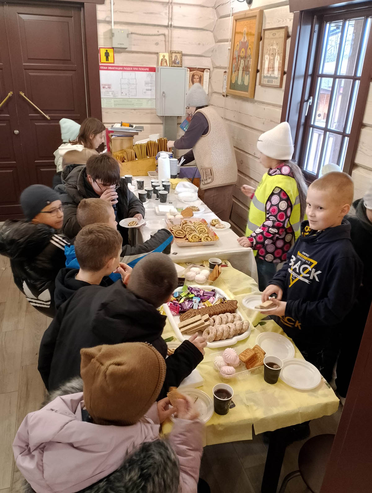 Тёплая атмосфера продолжилась за чаепитием, которое организовали гостеприимные прихожане. Угощения и душевная беседа помогли создать особую атмосферу взаимопонимания между школьниками и верующими.