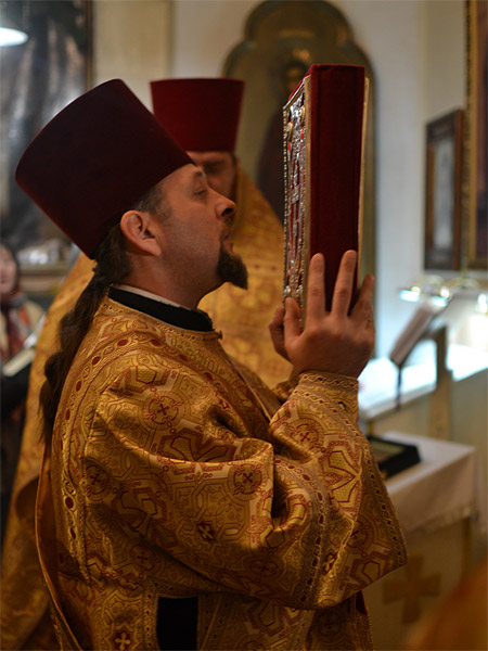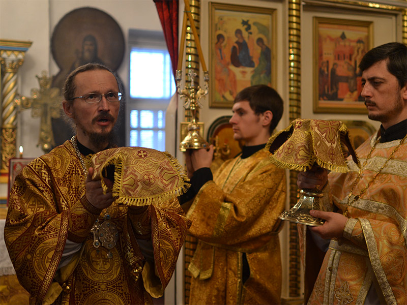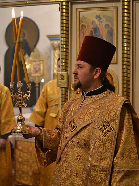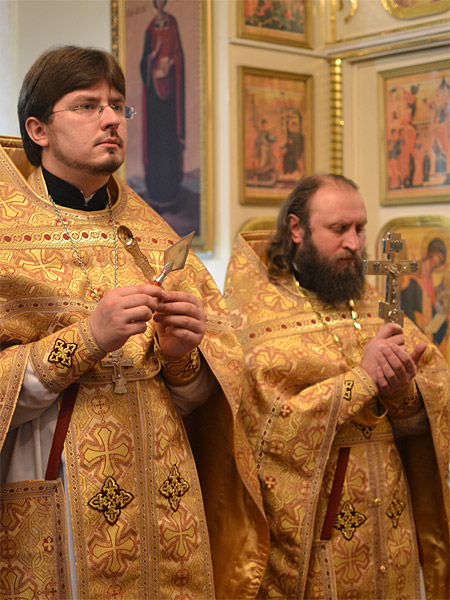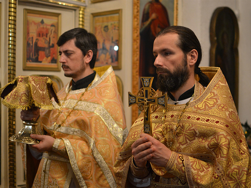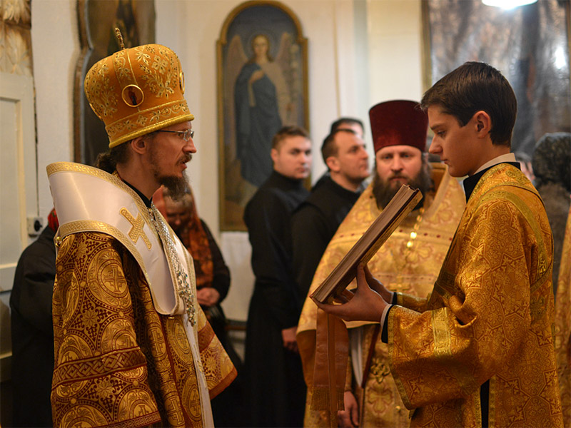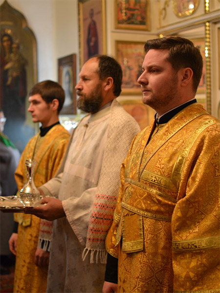 За Литургией Владыка совершил чин награждения набедренником и правом ношения камилавки священника Свято-Воскресенского кафедрального собора Павла Яцуковича. Диакон собора Георгий Росляков возведен в сан протодиакона с правом ношения камилавки.