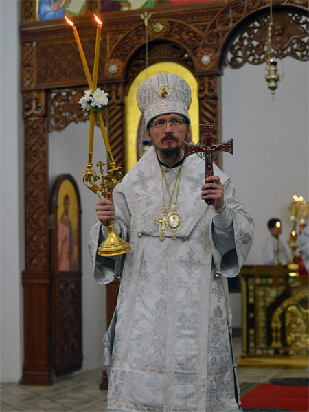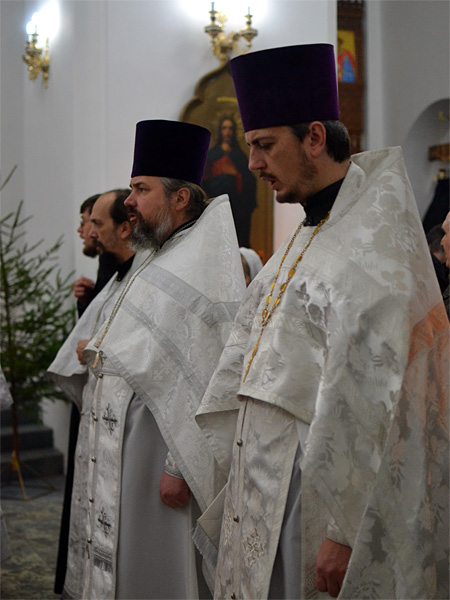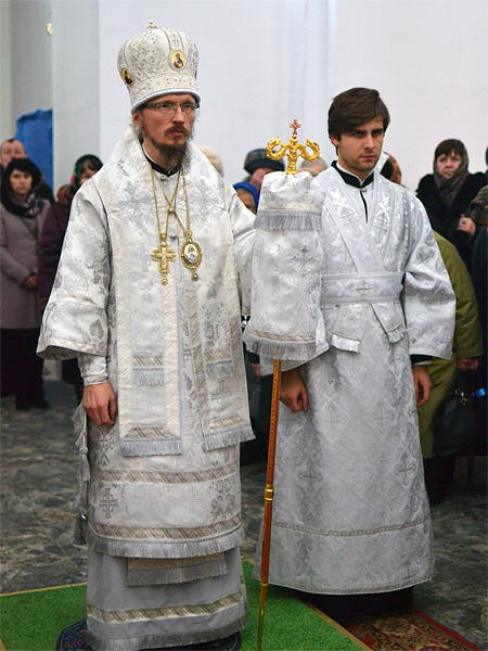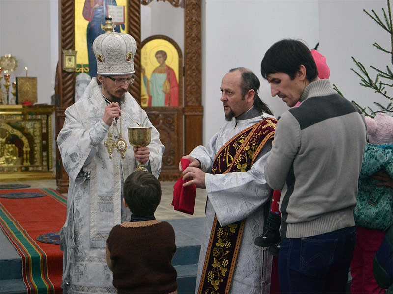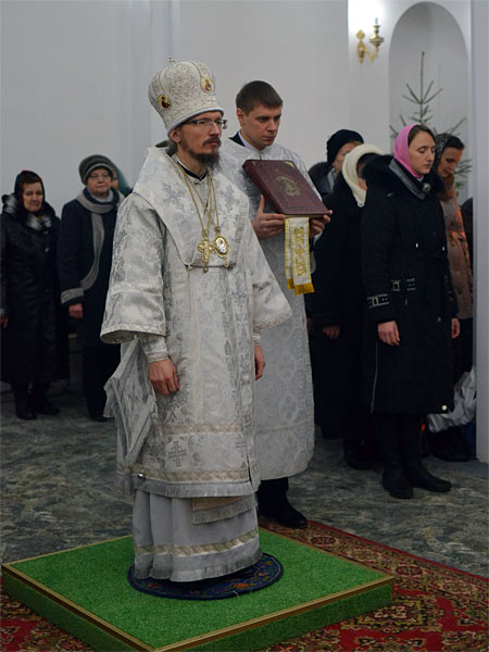 По окончании Литургии епископ обратился с архипастырским словом к прихожанам, ко всем, кто пришел в собор разделить радость торжества и Рождества нашего Спасителя Иисуса Христа.