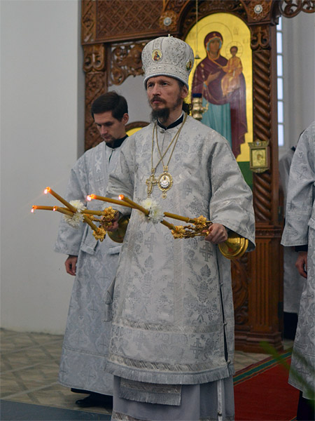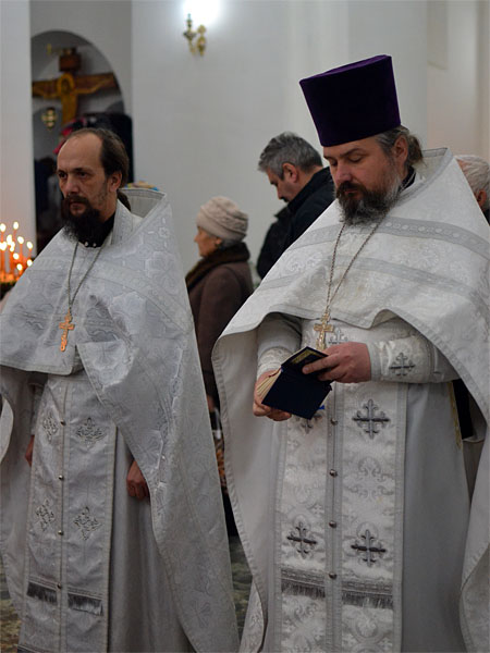 Преосвященнейшему Владыке сослужили благочинный Борисовского церковного округа, настоятель прихода храма Рождества Христова в г. Борисове протоиерей Александр Вербило, клирики собора старший священник протоиерей Димитрий Дорошенко, иерей Павел Яцукович, протодиакон Георгий Росляков, а также настоятель прихода храма святого Архистратига Михаила в д. Зембин иерей Андрей Капульцевич, настоятель прихода храма Святой Живоначальной Троицы в д. Бытча иерей Андрей Иваненко.