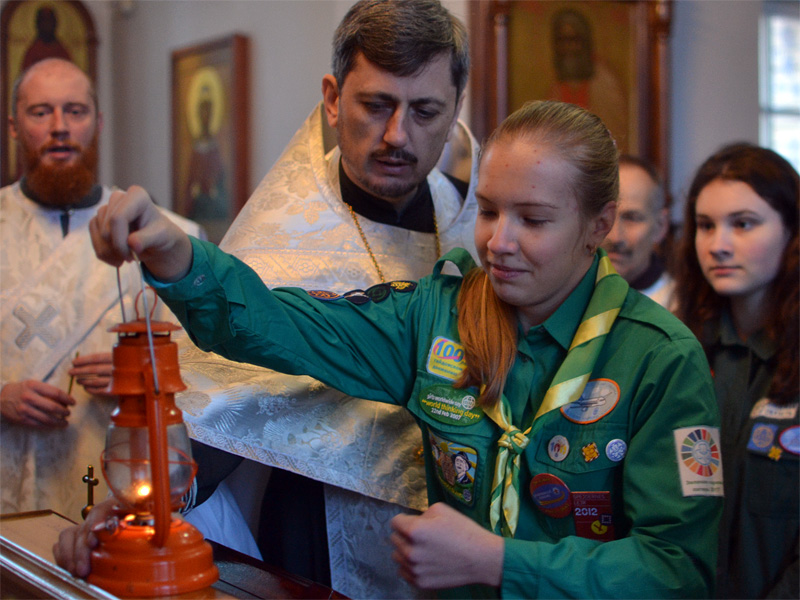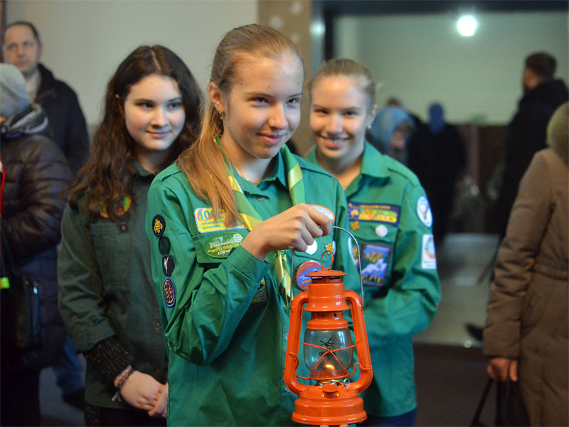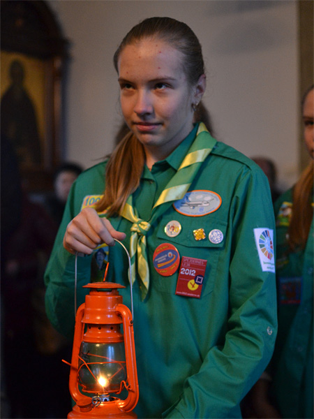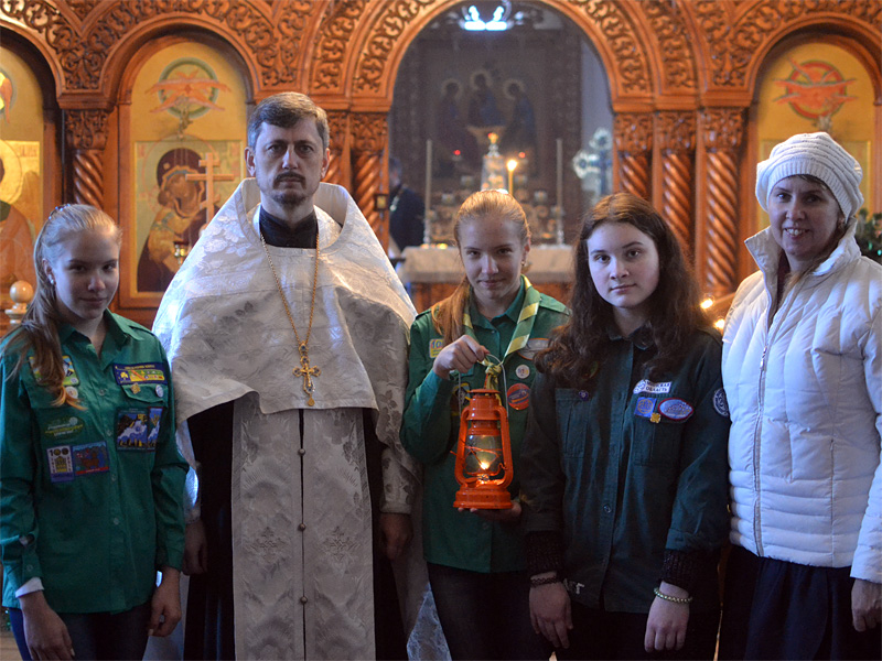 6 января в храм Рождества Христова г. Борисова члены ассоциации белорусских гайдов привезли благодатный огонь, доставленный из Вифлеема в Минск. Добровольное общественное объединение «Ассоциация белорусских гайдов» совместно с «Белорусской республиканской скаутской ассоциацией» уже много лет принимает участие в акции «Вифлеемский Свет Мира». Она проводится с 1987 года, когда впервые Вифлеемский огонь был доставлен в Вену. Из Вены он передается по скаутской эстафете в разные страны. В конце прошедшего года белорусские гайды и скауты получили благодатный огонь от скаутов Национальной организации скаутов Украины. Из Минска Ассоциация белорусских гайдов передала Священный огонь в другие города Беларуси, где он внесен в православные храмы, в том числе и в храм Рождества Христова г. Борисова. Благодатный огонь встречал благочинный 1-го Борисовского церковного округа, настоятель прихода протоиерей Александр Вербило и прихожане храма.
