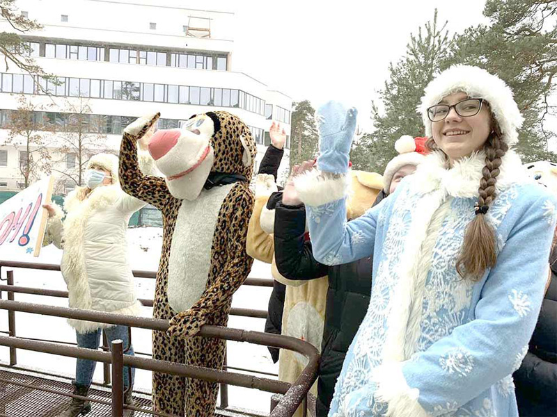 6 января к юным пациентам педиатрического отделения Борисовской ЦРБ пришел настоящий праздник. Участники волонтерского движения «Воскресение» при Свято-Воскресенском кафедральном соборе г. Борисова, переодевшись в Деда Мороза, Снегурочку и других волшебных персонажей, исполнили зажигательный танец прямо под окнами больницы.