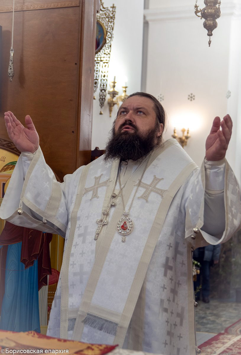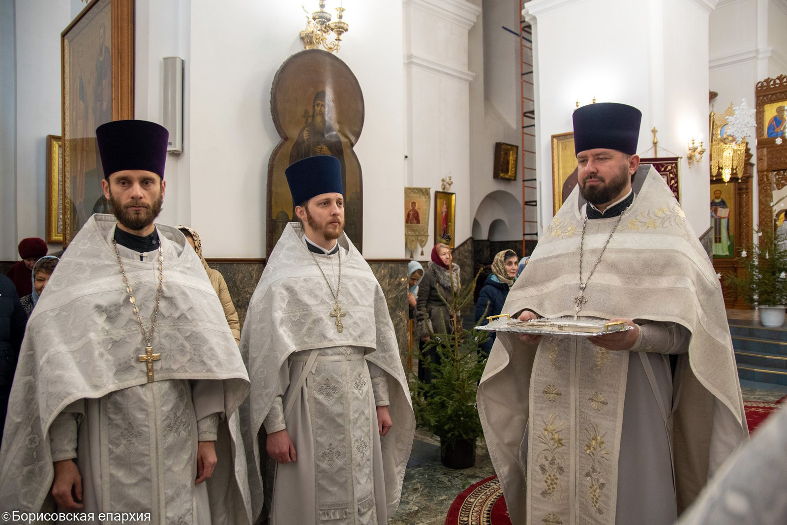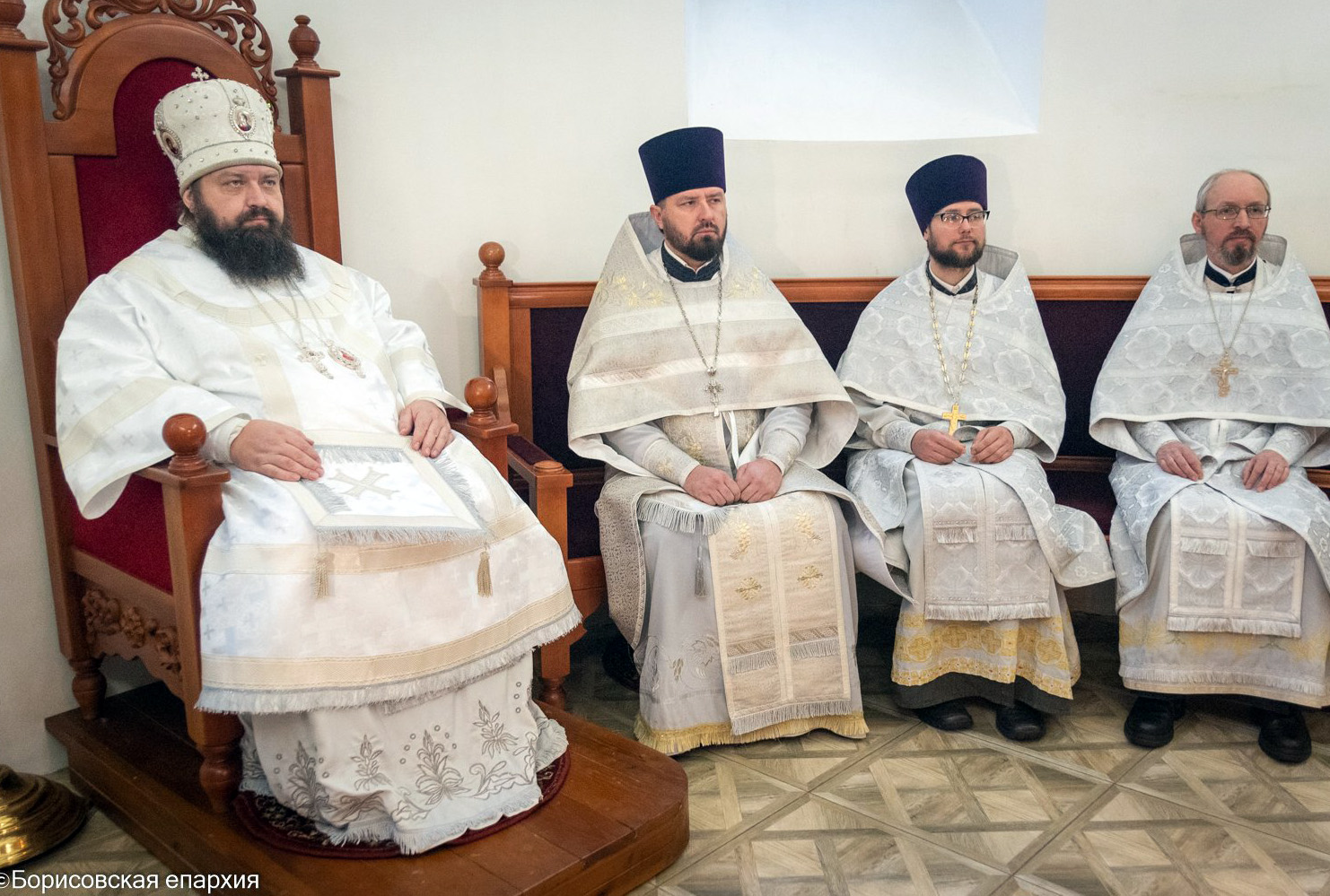 За богослужением архипастырю сослужили: ключарь кафедрального собора Воскресения Христова г. Борисова протоиерей Павел Яцукович; клирики кафедрального собора.