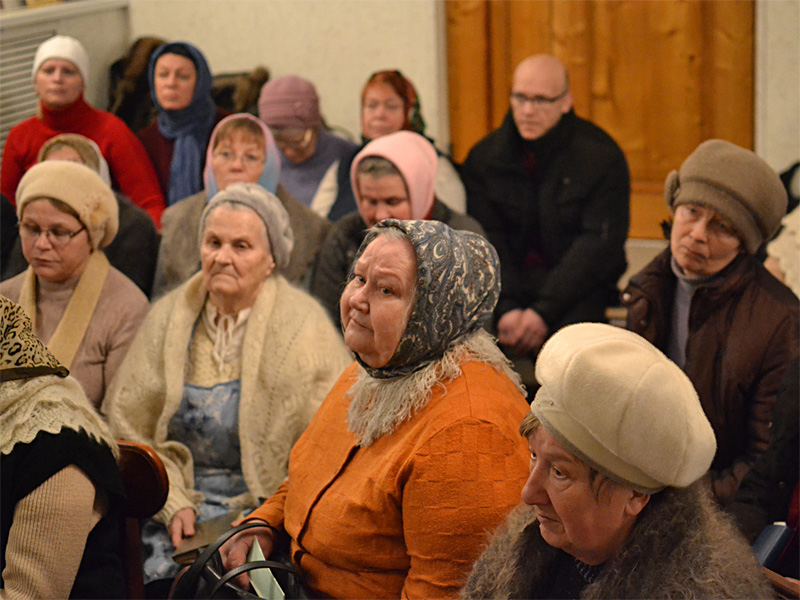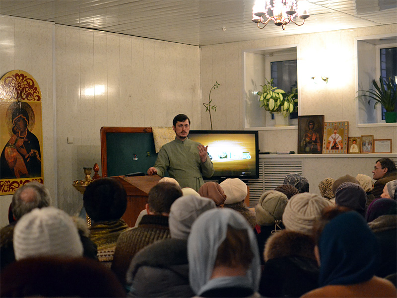 Затем прихожане прослушали аудио-беседу отца Олега Стеняева по первой главе Евангелия от Матфея. В руках у каждого было Священное Писание, чтобы можно было посмотреть в него, прочитать по ходу беседы и тем самым лучше понять ее смысл и содержание. Следующая беседа на Евангелие от Матфея состоится 9 февраля в 17.45 здесь же, в храме Рождества Христова.