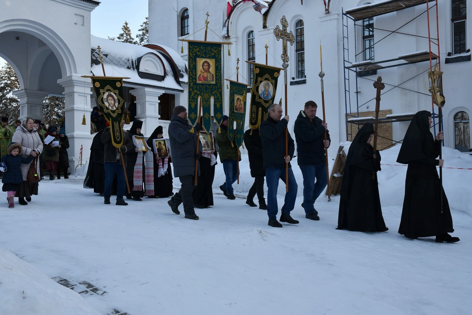 По окончании Литургии был совершен крестный ход, во время которого на месте строящегося храма в честь иконы Божией Матери «Домостроительница» была вознесена молитва о скором завершении строительства обители, а затем у места захоронения игумении Василиссы (Медведь) была отслужена заупокойная лития.