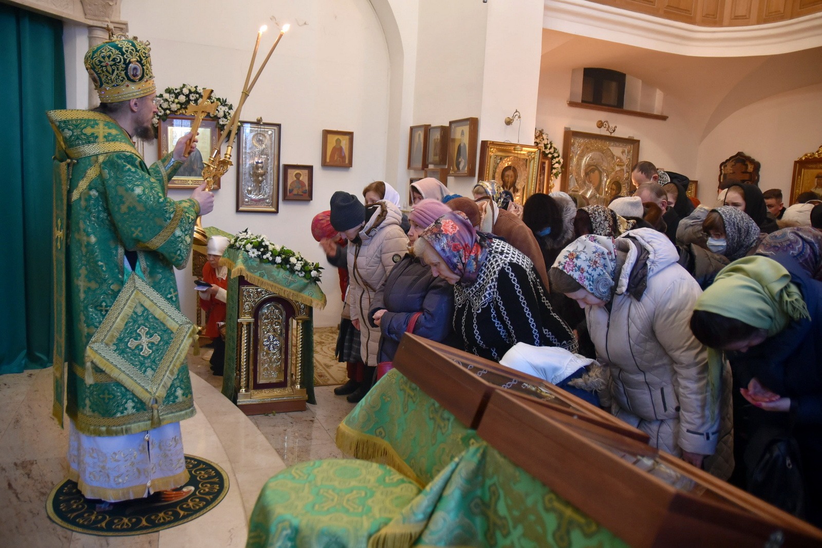 Высокопреосвященнейший владыка обратился к духовенству, сестрам обители и паломникам с архипастырским словом, поздравил причастников с принятием Святых Христовых Таин и преподал всем архипастырское благословение.