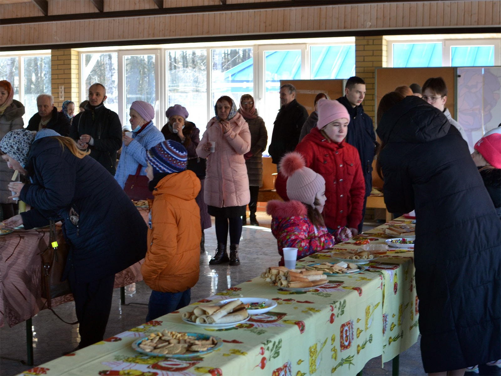 6 марта в Прощеное воскресенье после Божественной литургии на крытой веранде приходского дома храма Рождества Христова г. Борисова для прихожан была организована масленица.