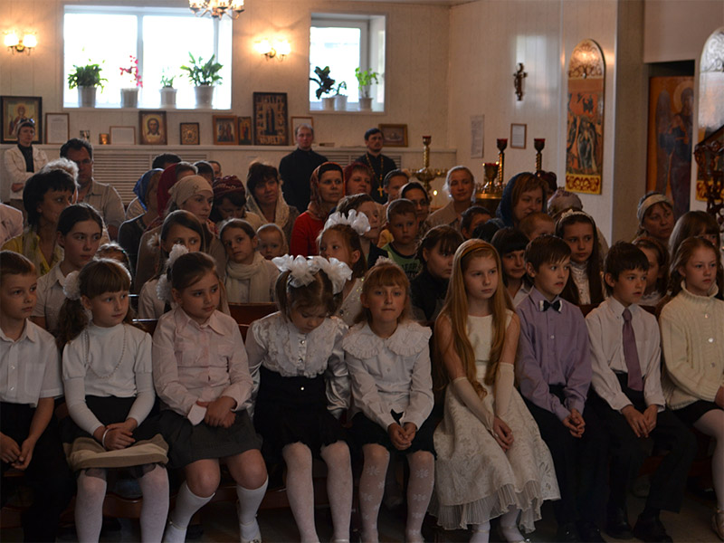 Послушать и посмотреть выступления детей пришли в храм их родители, прихожане. По окончанию концерта всем его участникам были вручены подарки, а затем ребята на крыльце храма вместе со священниками сфотографировались на память.