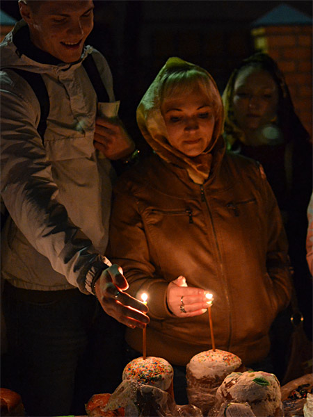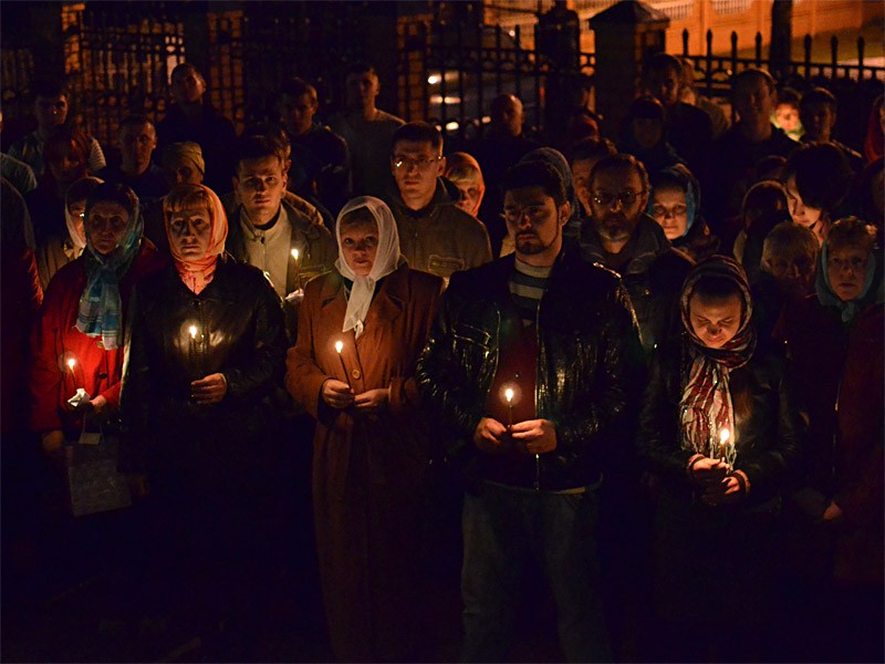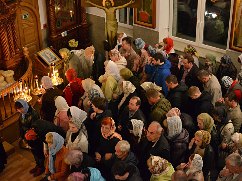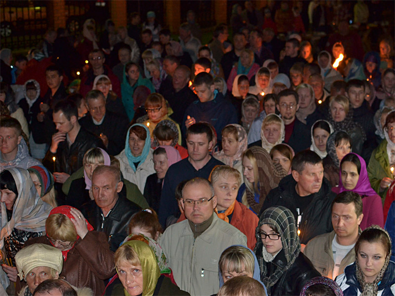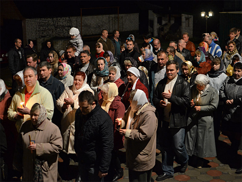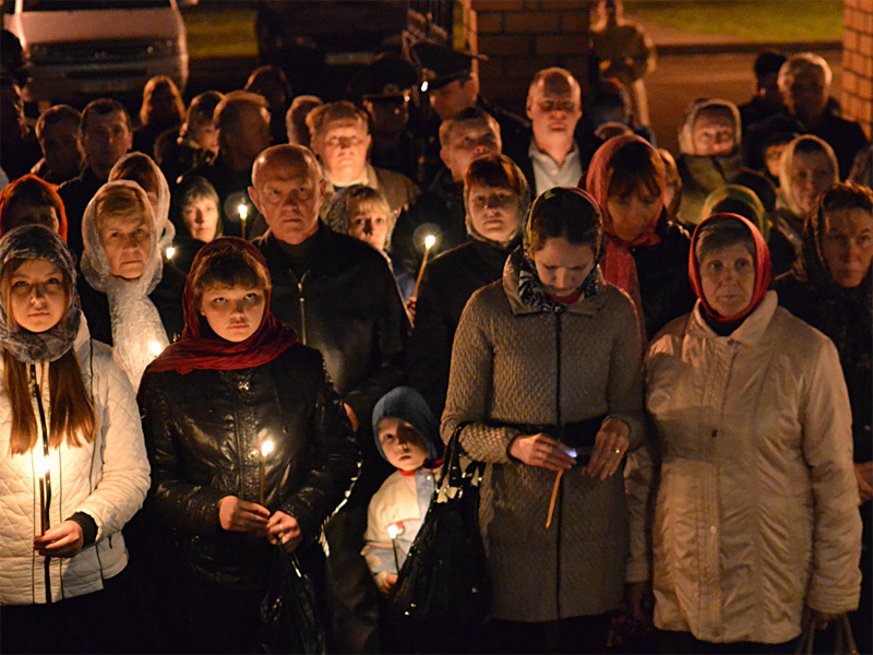 Огромное множество православных верующих посетило в ту ночь храм. Его помещение не могло вместить всех желающих. Многие молились во дворе храма. Во время перерыва и по окончании богослужений священники до самого утра, а затем почти до полудня освящали принесенные людьми пасхальные куличи и яйца. А до этого освящение, несмотря на ненастную , дождливую погоду, проходили в Великую субботу. У всех было радостное и праздничное настроение.